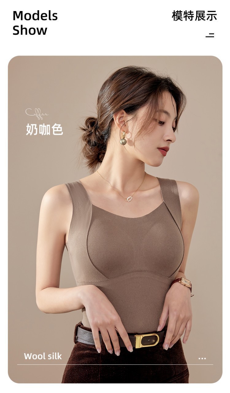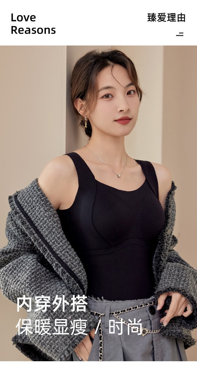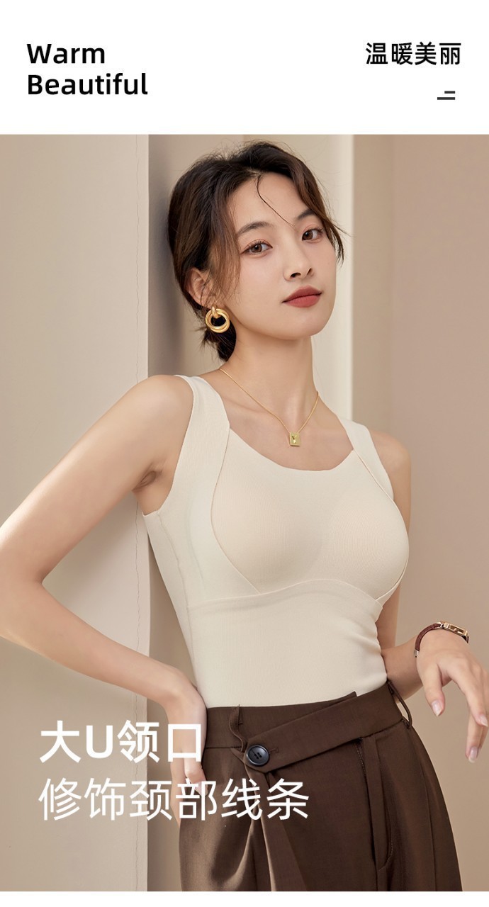 Новый кашемировый термальный жилет для женщин с фиксированной чашкой, осенне-зимний бархатный утолщенный однослойный базовый топ