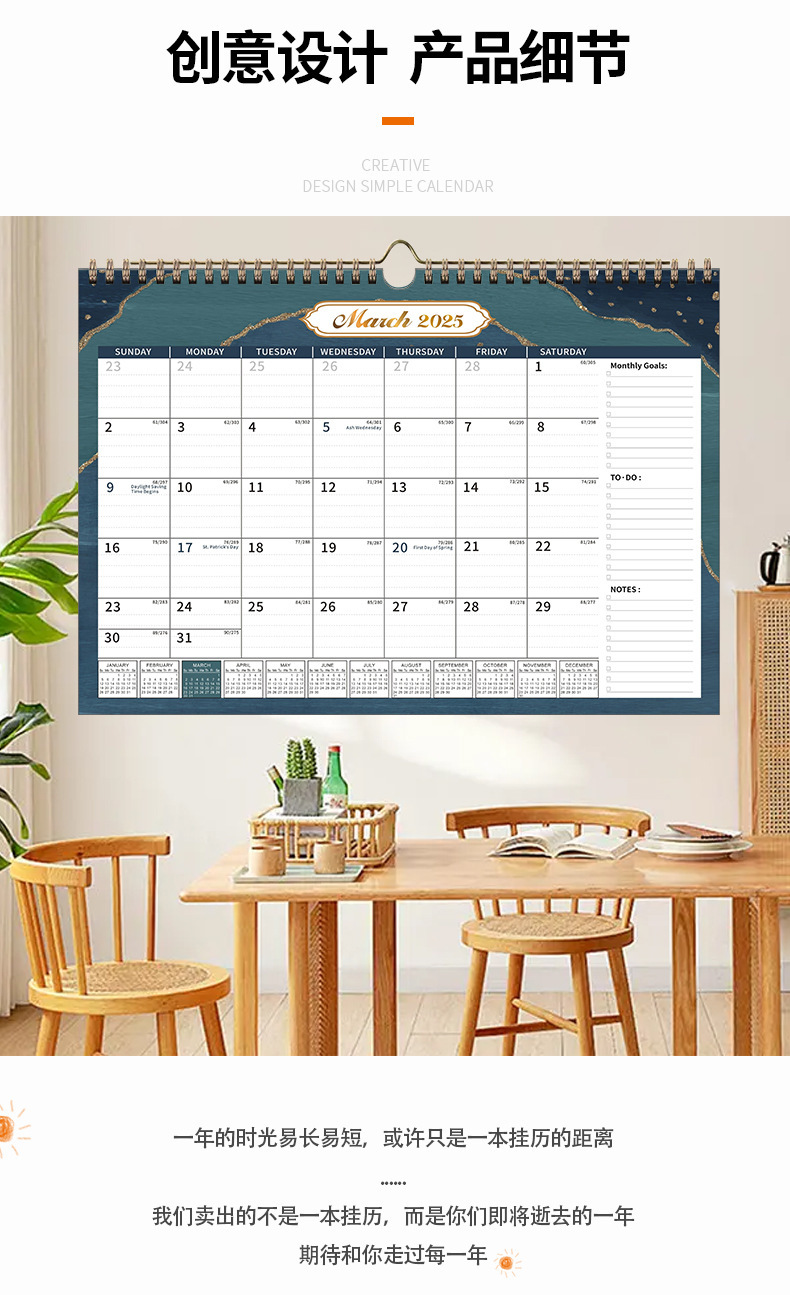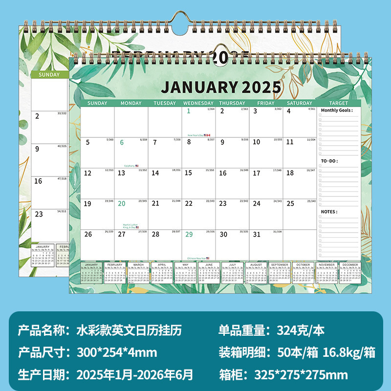 Индивидуальный годовой календарь Месячный календарь Кросс-бордерная английская версия Обратный отсчет Amazon Модель 2025 Настенный календарь Индивидуальный настенный календарь