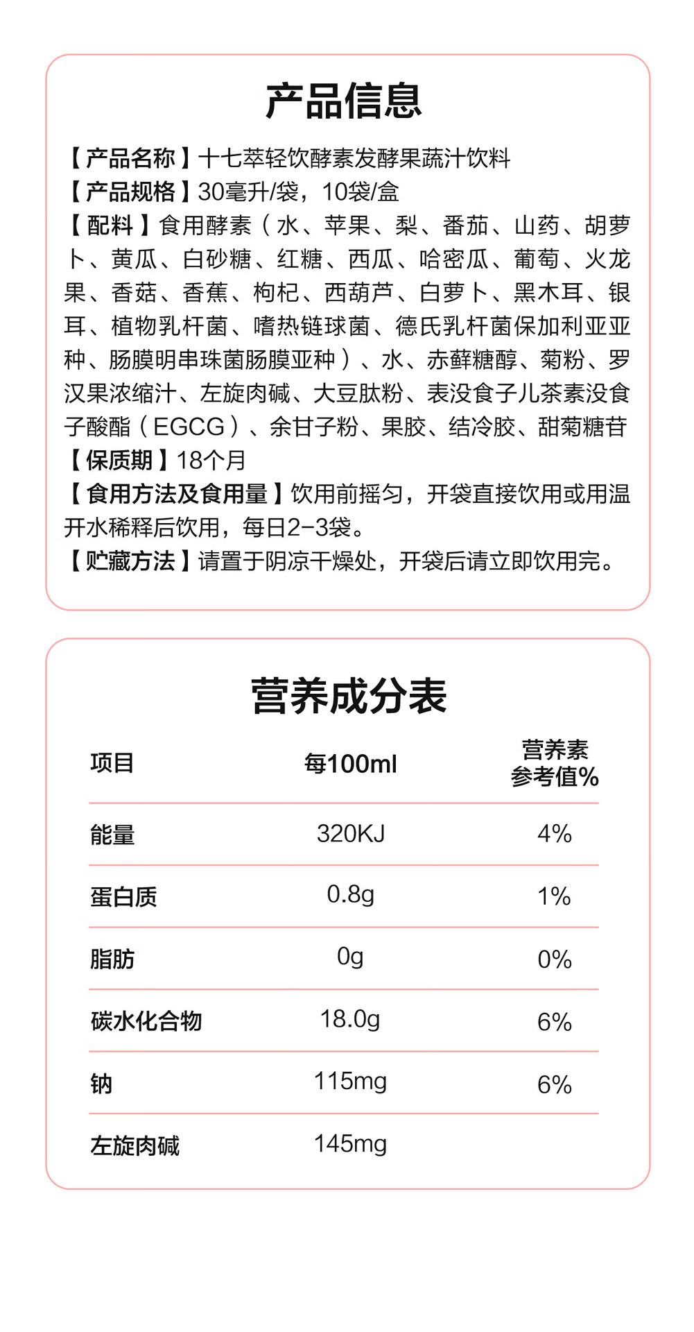 Перфект Семнадцать экстракт Легкий напиток Ферментированный фруктово-овощной сок для девушек (30мл*10 пакетов)