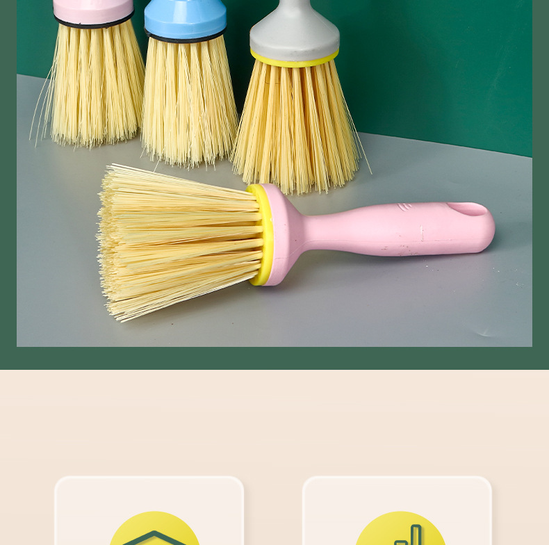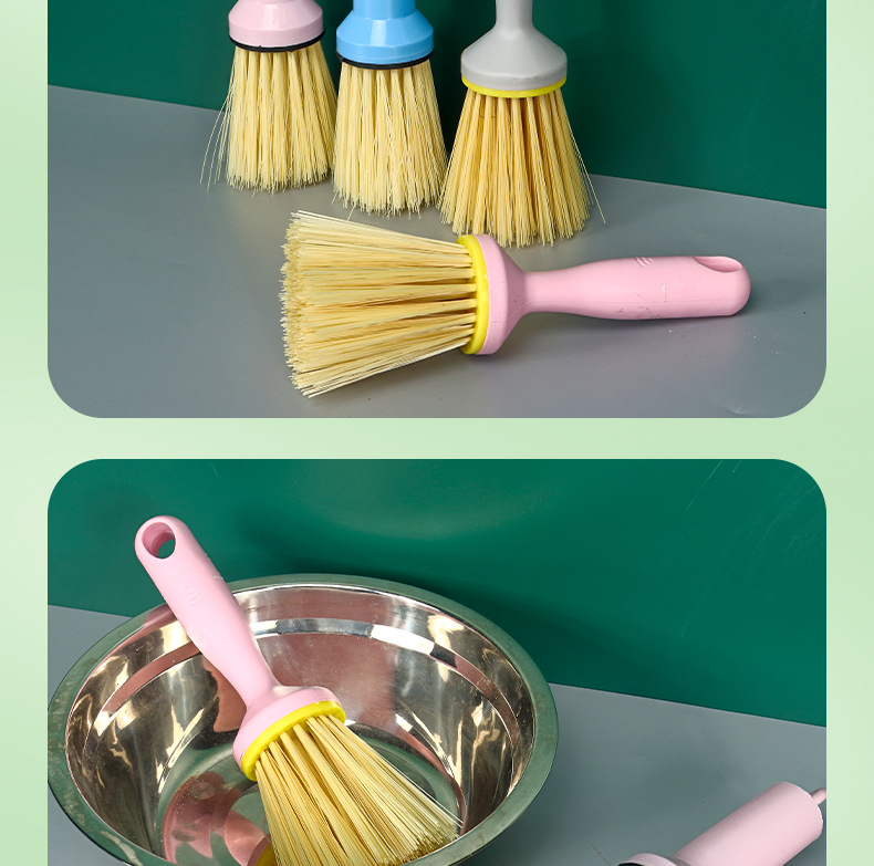 Круглая пластиковая щетка с длинной ручкой для мытья посуды, чистки плит и удаления накипи