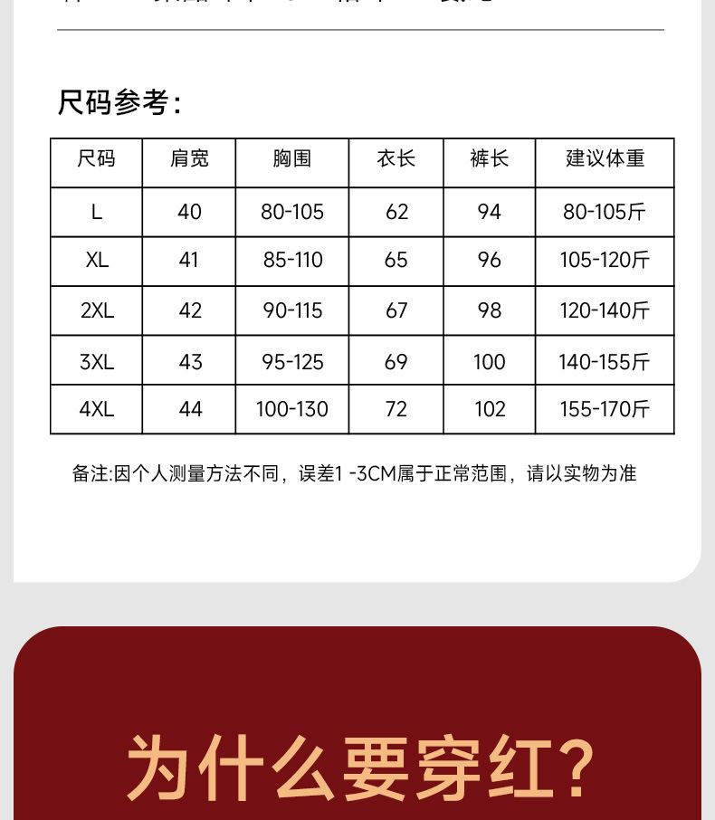 ![]() | [3 pieces mid-collar boxed] 7705 red suit + 1 blessing underwear + 1 socks | 3xl size [suitable for 70-77.5kg ] | ¥59.0 / ≈ 718 ₽ | 98 | 5640661577579 | |