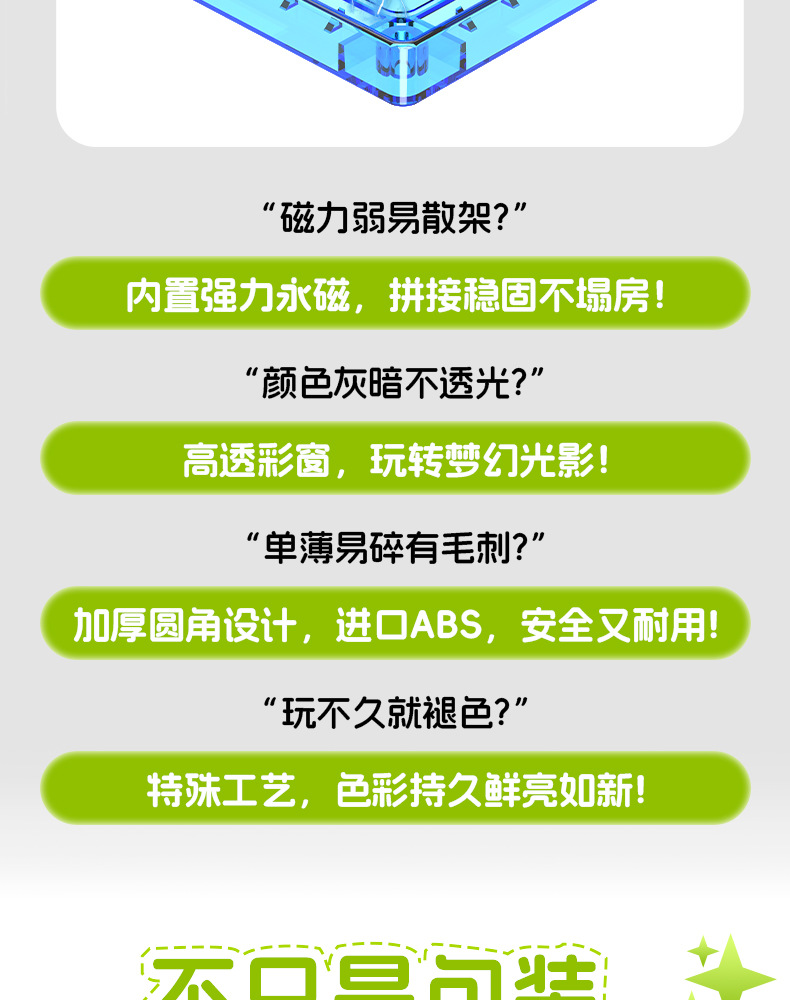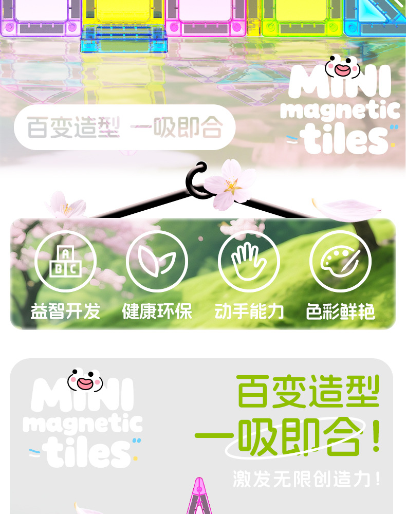 Случайные цвета Qianman Новый продукт Макро цветные магнитные плитки Мини цветные окна Образовательные магнитные односторонние плитки