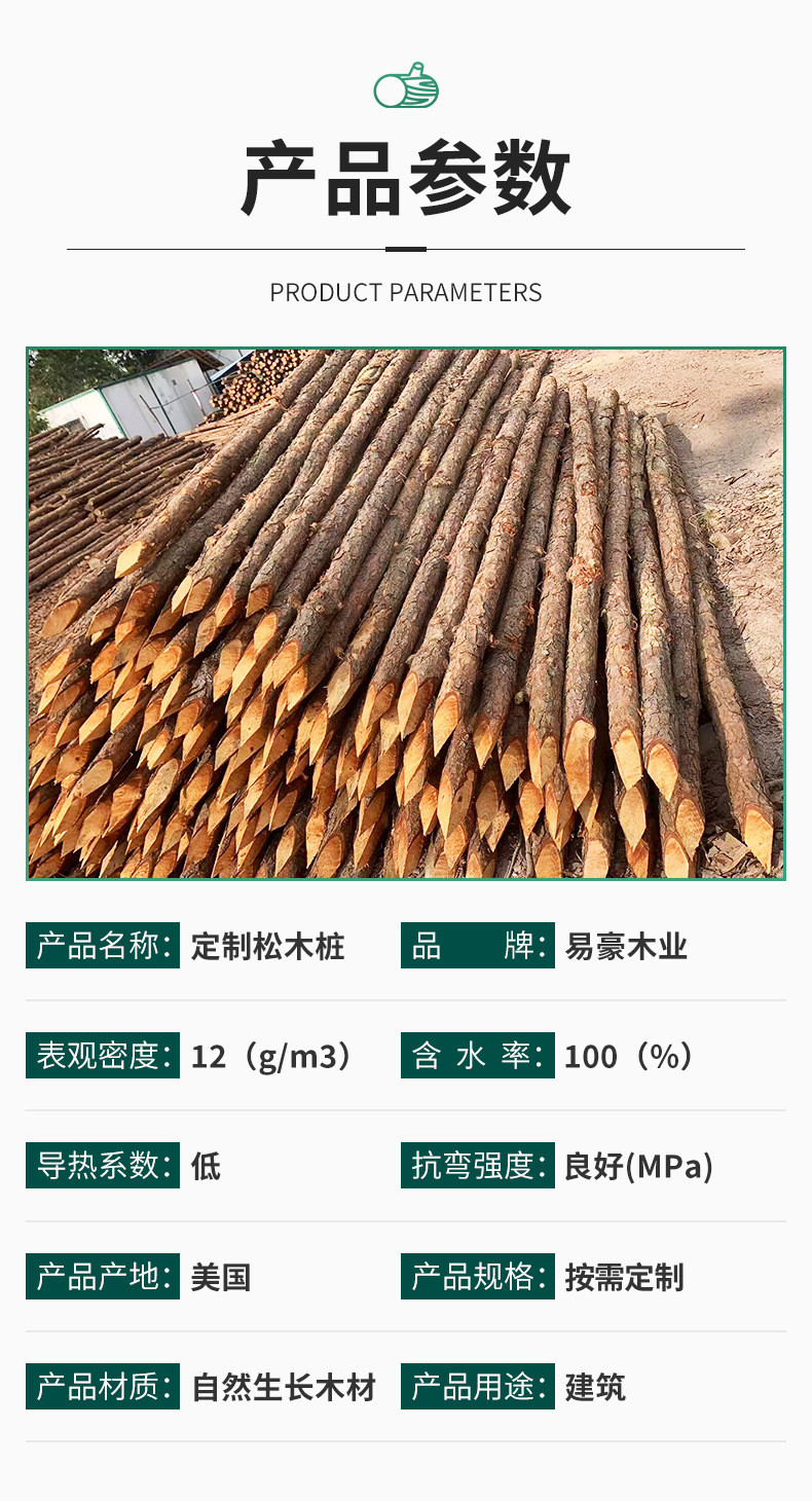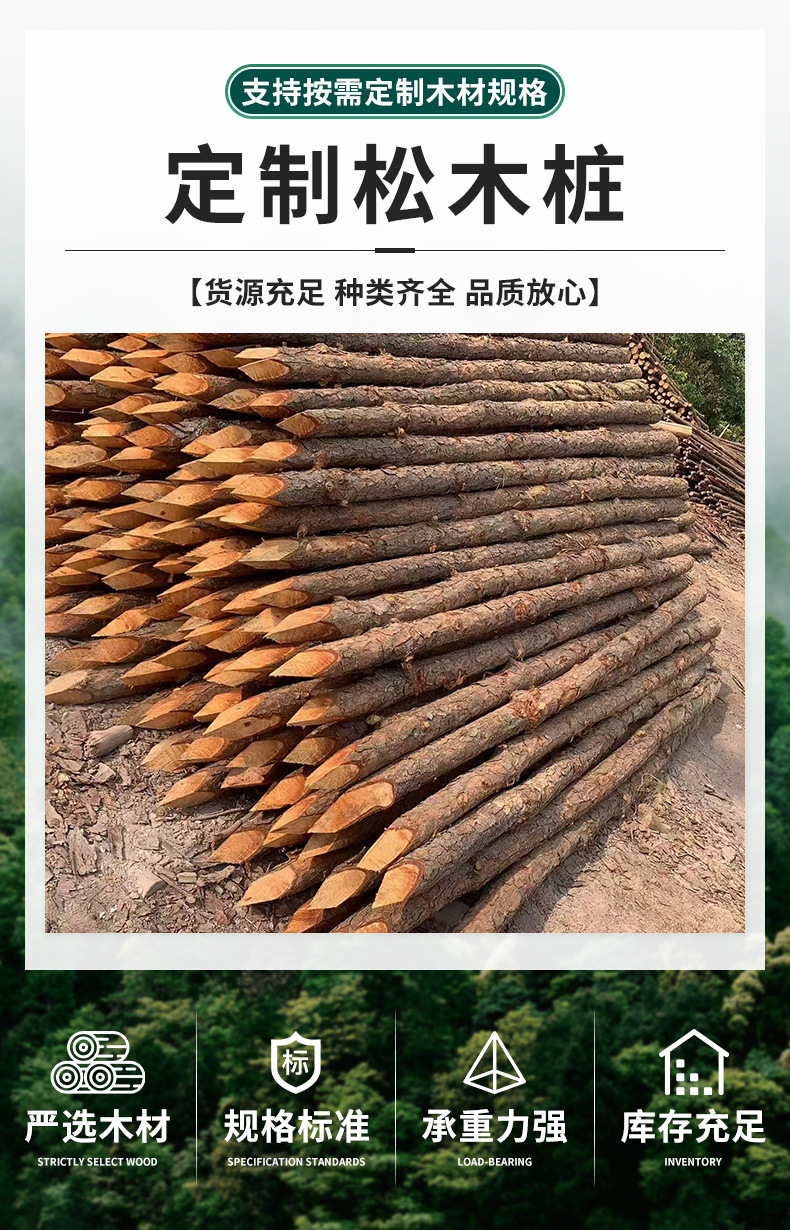Сосновые сваи, река, древесина для водохранилищ, гражданское строительство, борьба с наводнениями, антиводные сваи, поддерживающие столбы
