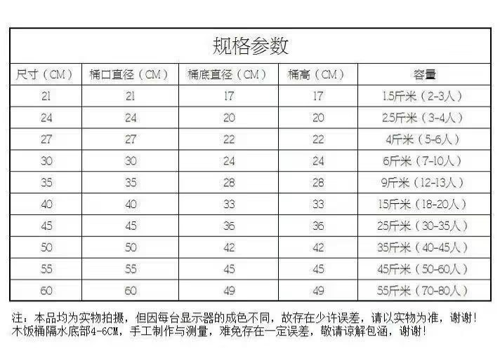 ![]() | No wax and no glue (Chinese fir steamed rice barrel) | 24 caliber 1.50kg meters (4-6 people) wooden bottom | ¥52.95 / ≈ 644 ₽ | 999956 | 5808060842426 | |