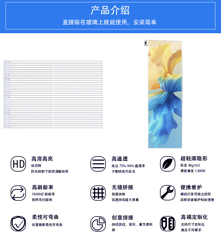 LED пленочный экран, гибкий LED высококачественный дисплей, оконный выставочный зал, большой экран
