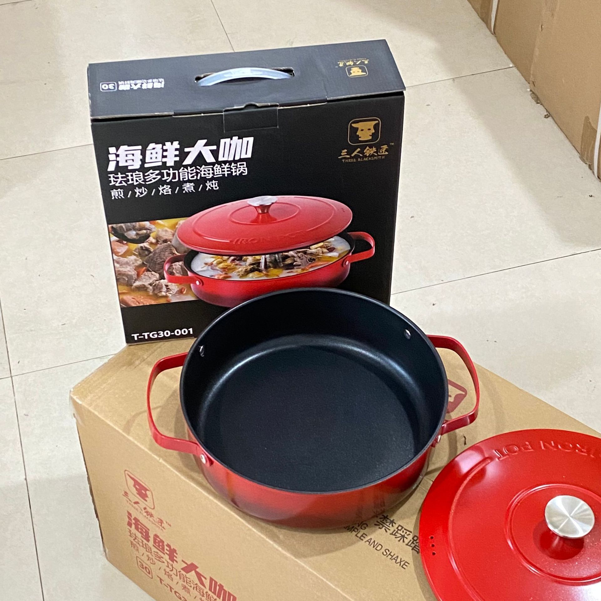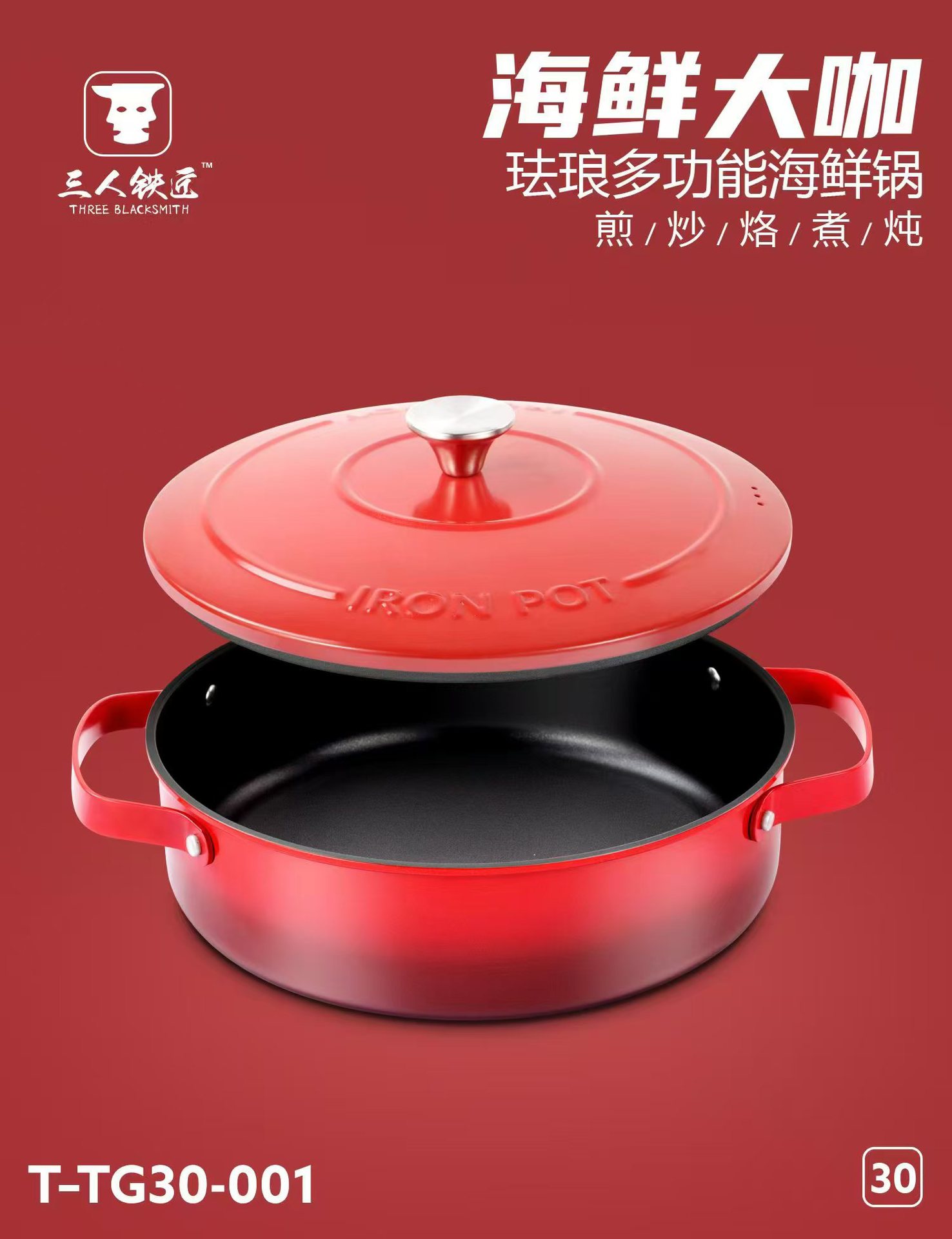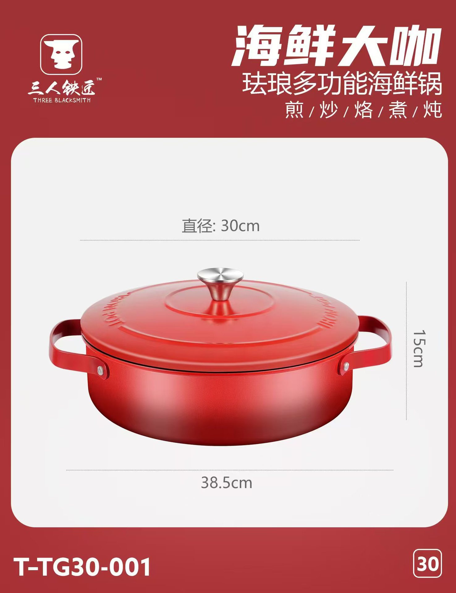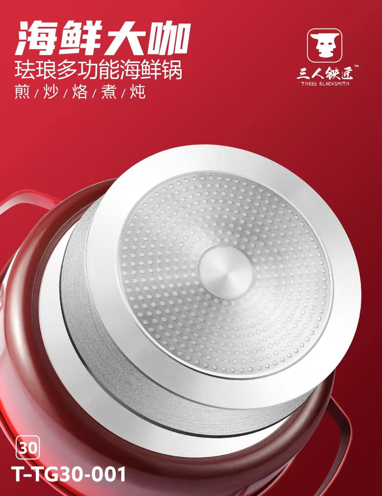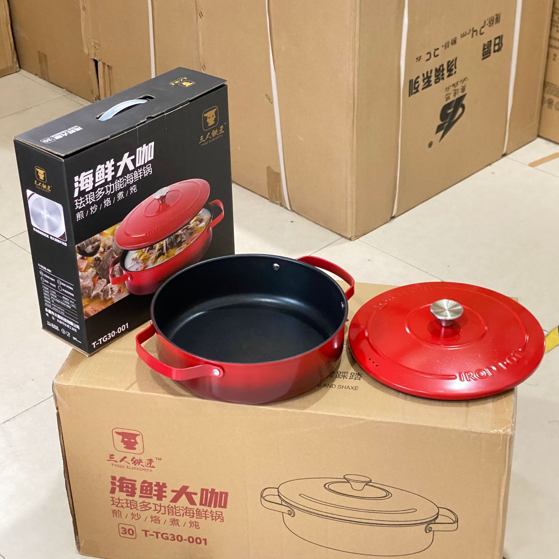 Эмальированная морепродуктовая кастрюля, многофункциональная, плоское дно, антипригарная, для газовой и индукционной плит