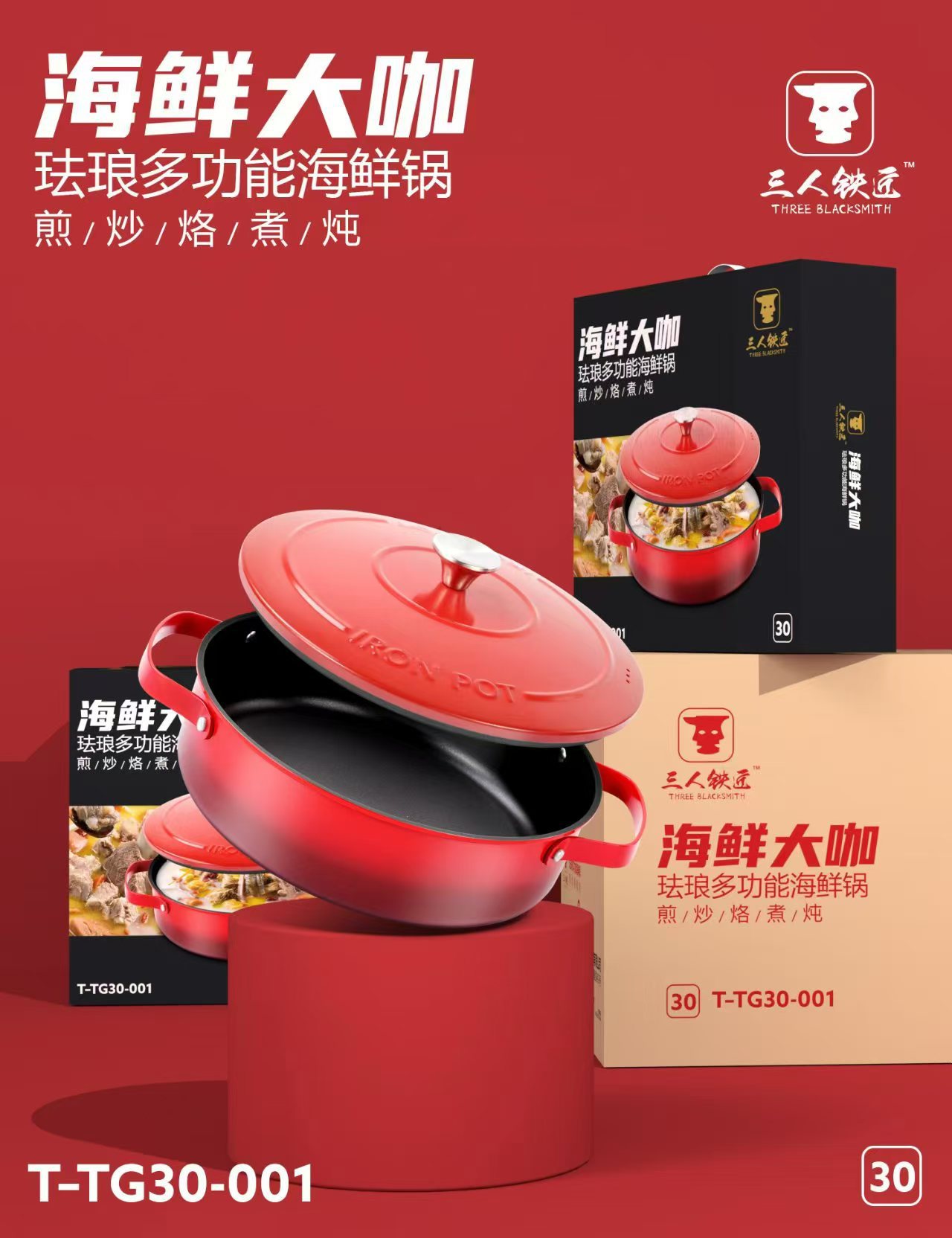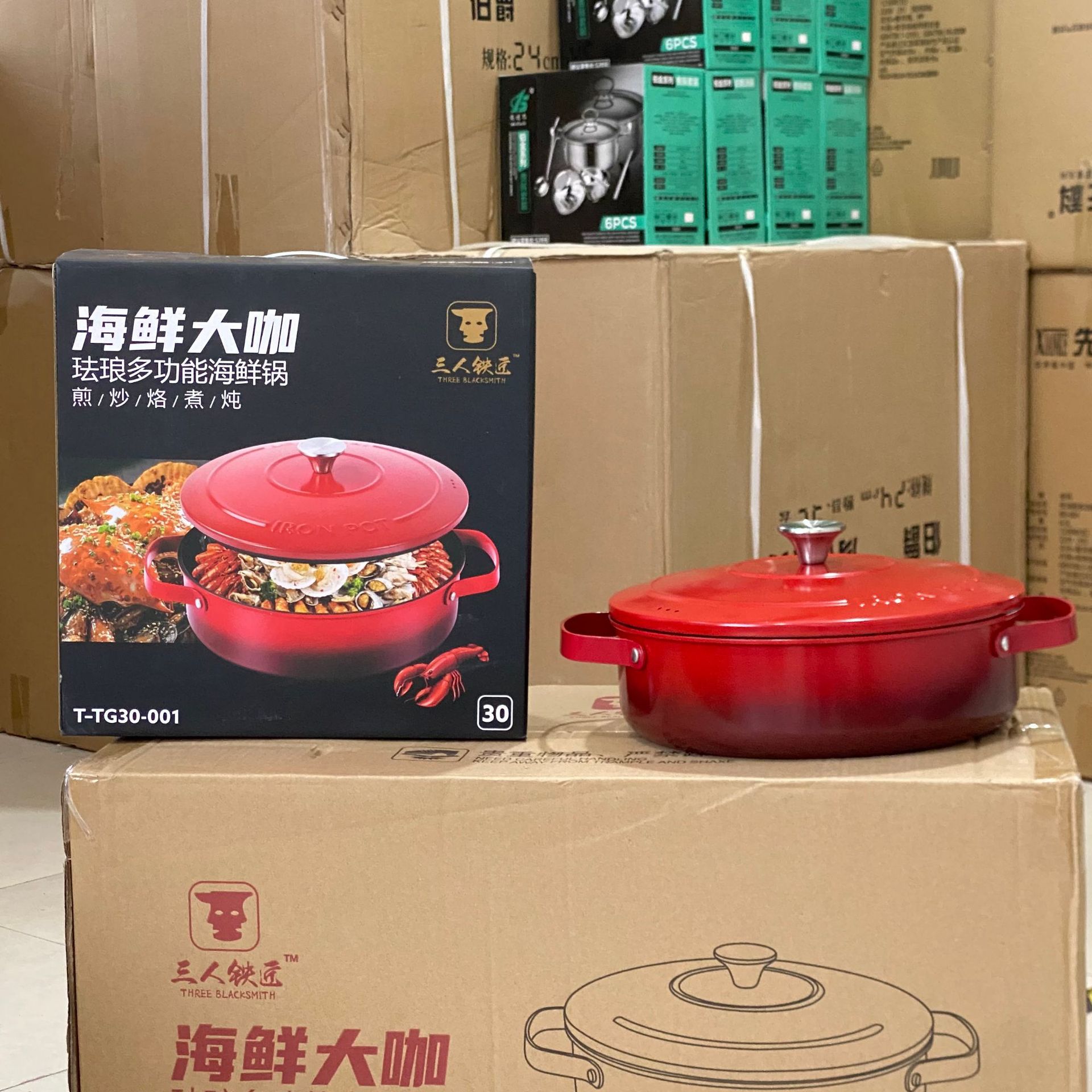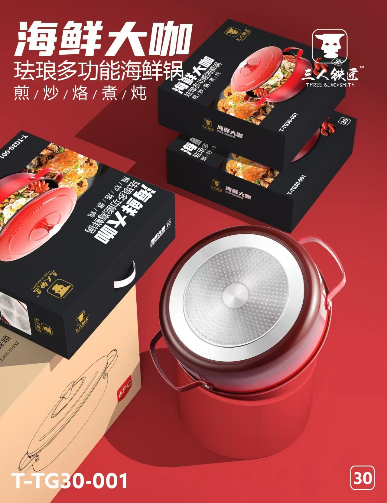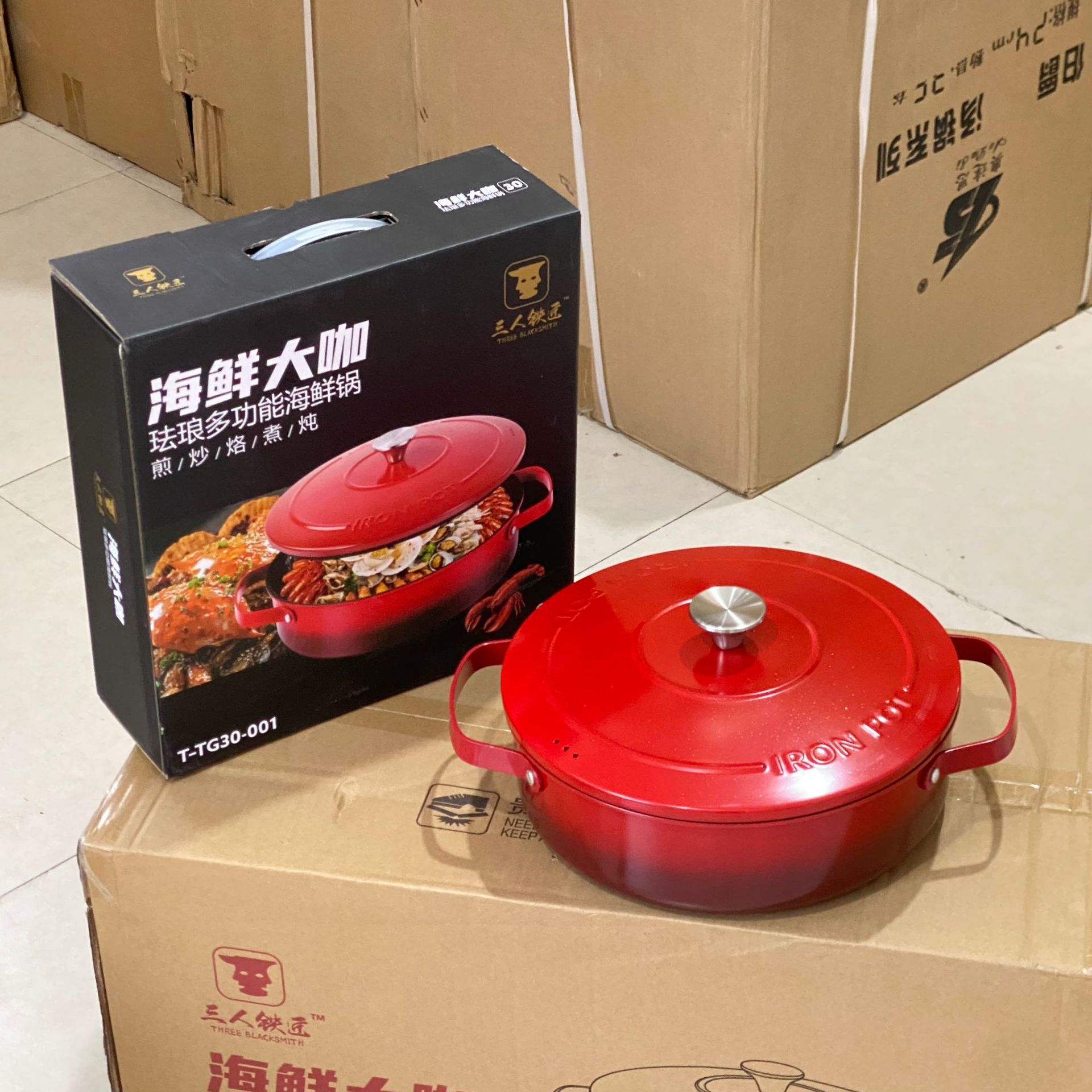 Эмальированная морепродуктовая кастрюля, многофункциональная, плоское дно, антипригарная, для газовой и индукционной плит