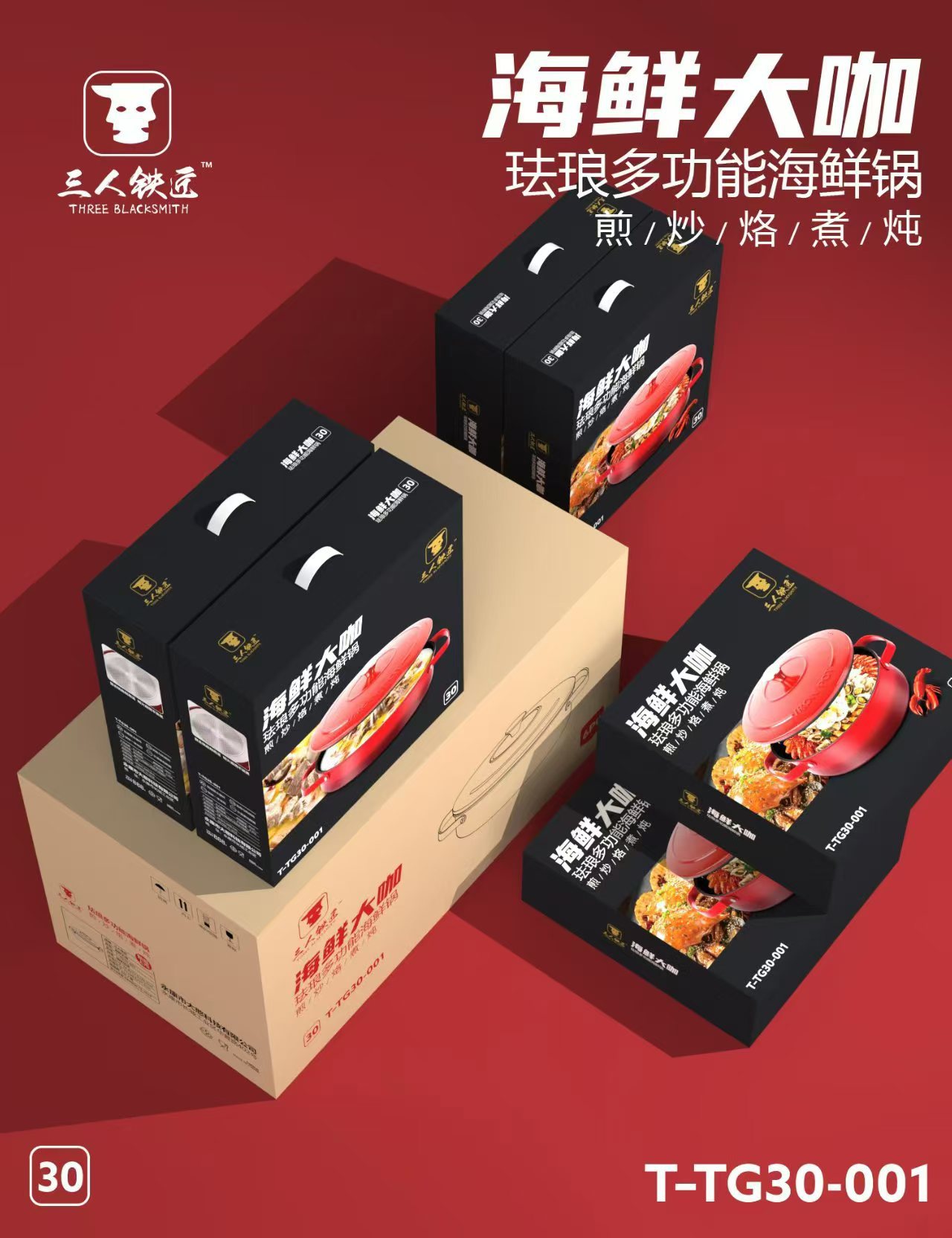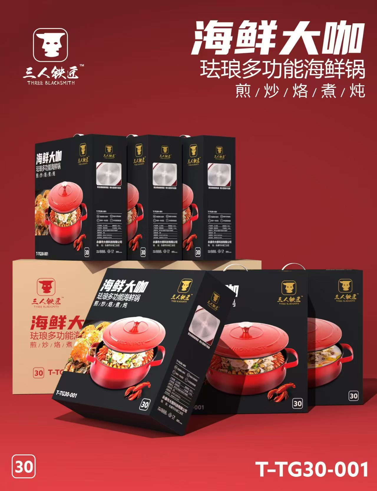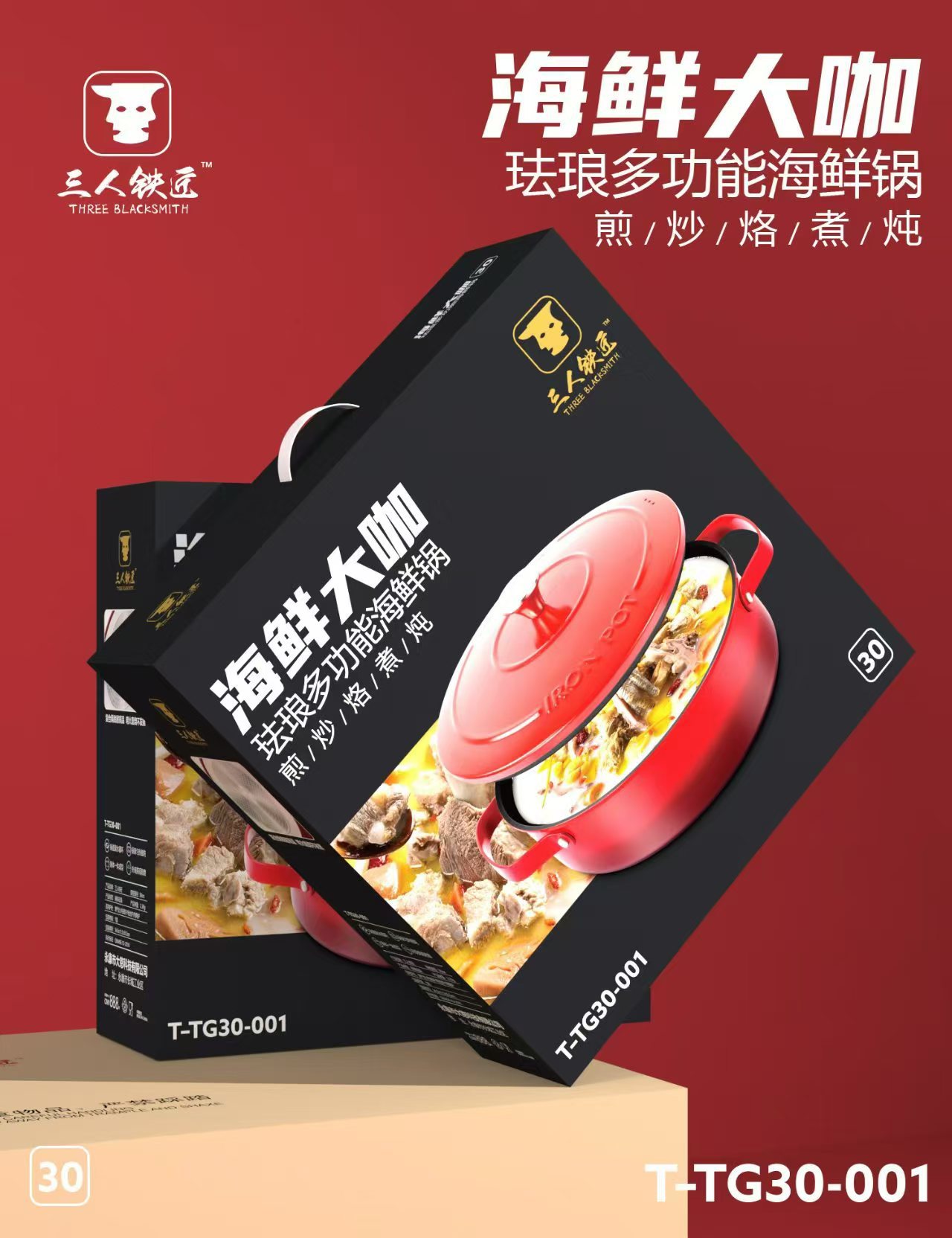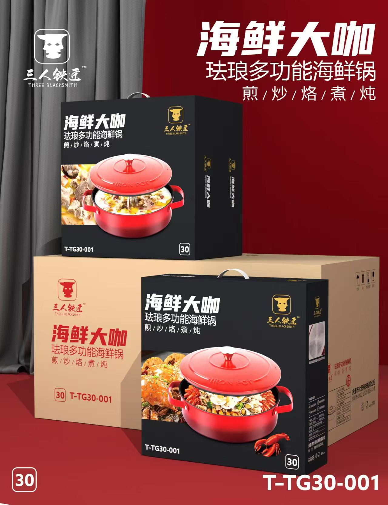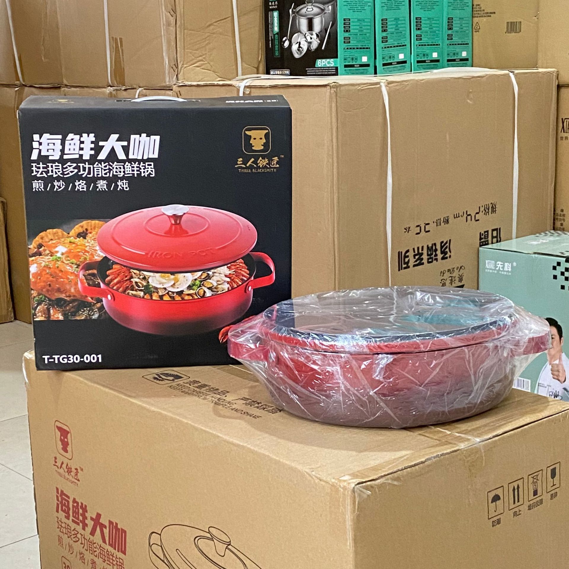 Эмальированная морепродуктовая кастрюля, многофункциональная, плоское дно, антипригарная, для газовой и индукционной плит
