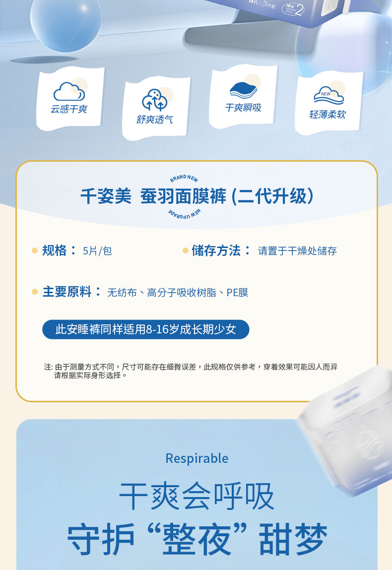 Пижама Qianzimei'An, шелковая прокладка, безопасные трусы, дружелюбные к коже, дышащие, непромокаемые