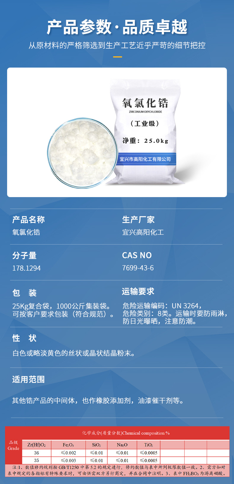 Прямая поставка большого объема отличного кислорода хлорида циркония резиновая добавка сушка краски упаковочные спецификации 25кг