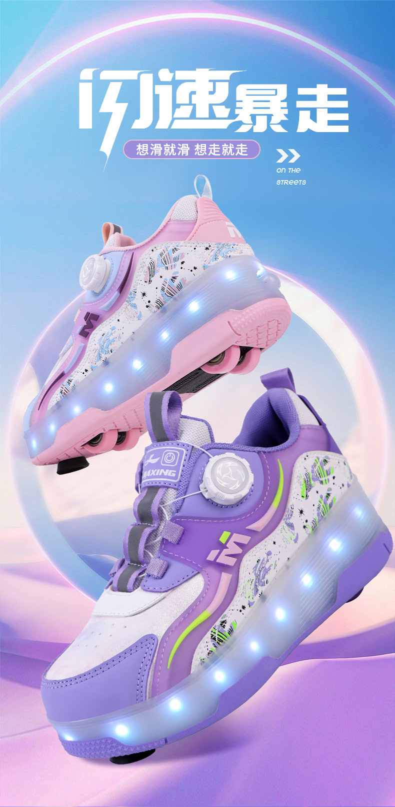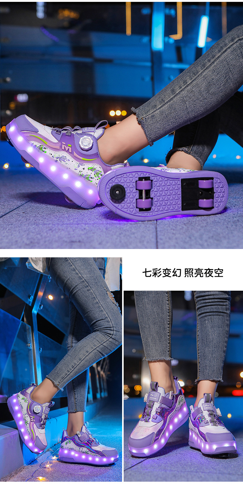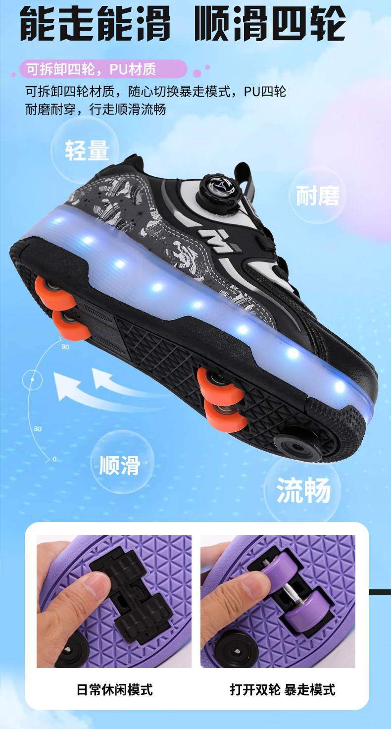 Кросс-бордерные обуви heloo, двойные четырехколесные роликовые обуви с LED-подсветкой для студентов