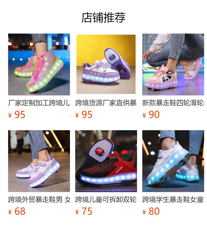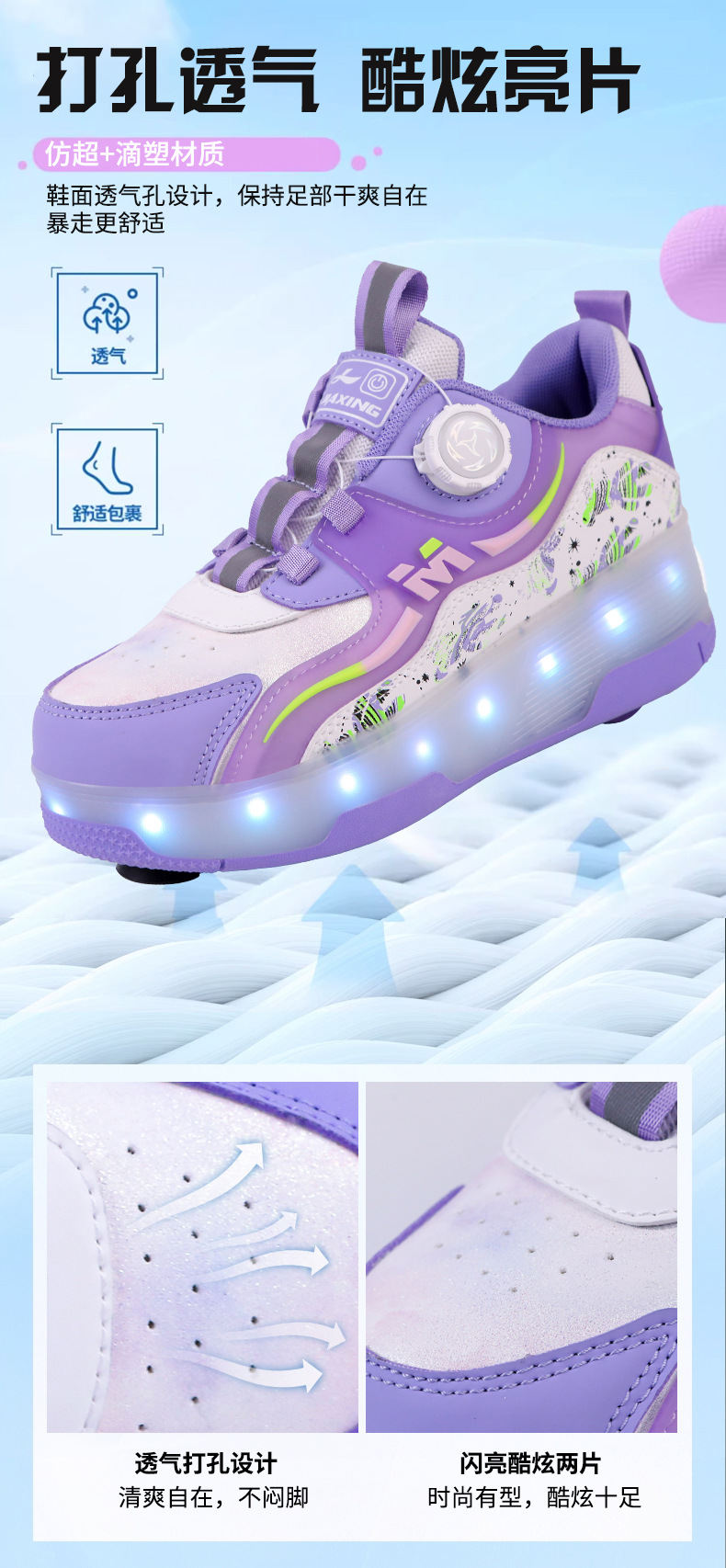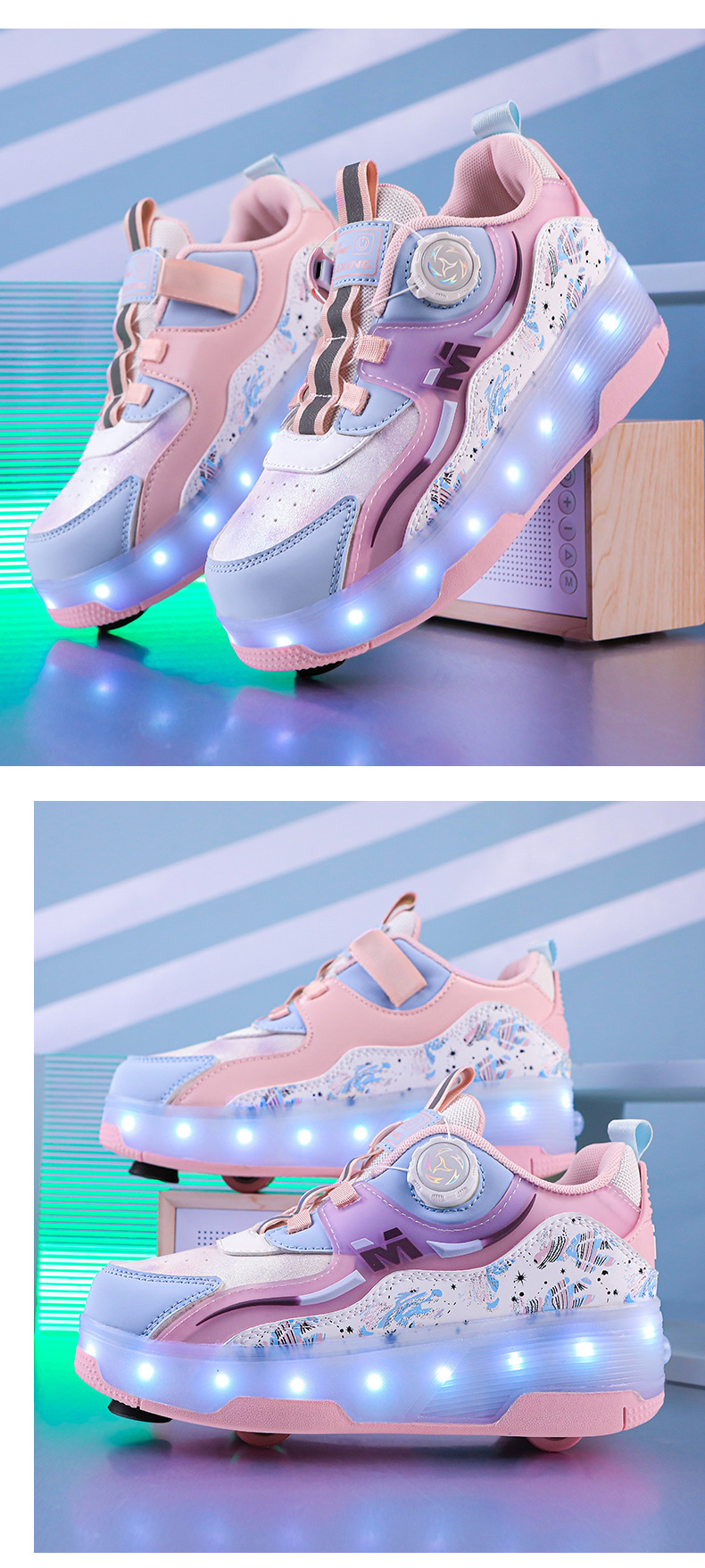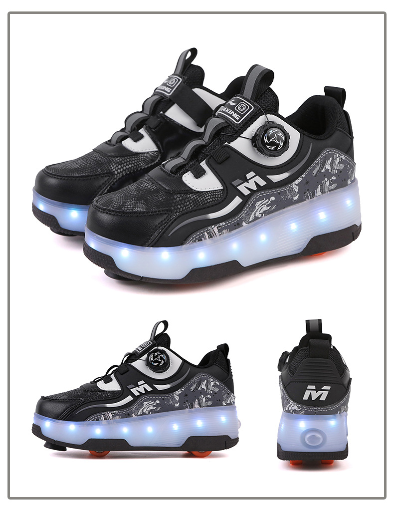 Кросс-бордерные обуви heloo, двойные четырехколесные роликовые обуви с LED-подсветкой для студентов