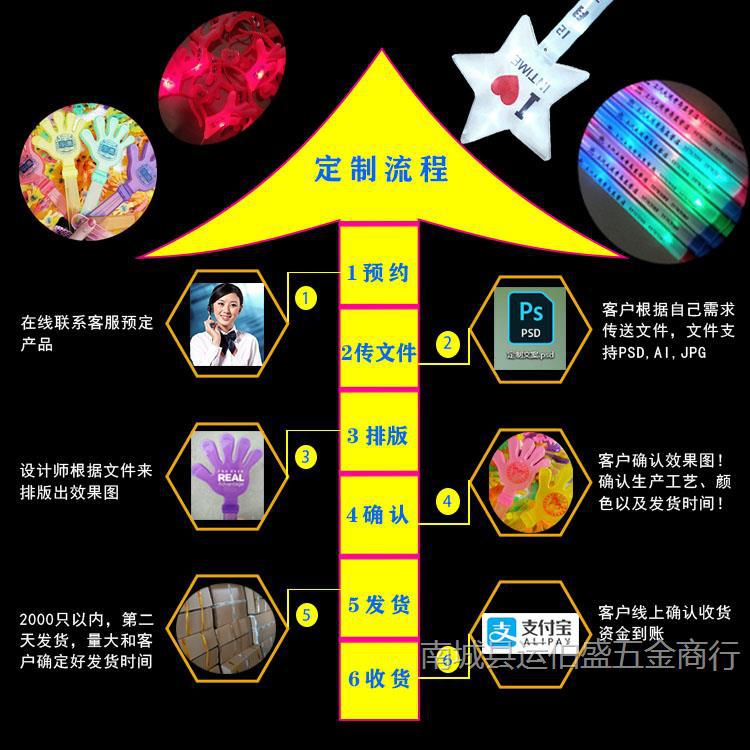 本产品也是适用于大型活动,演唱会,公司庆典等助威神器,可各种文案,此类电子产品在暴力运输过程中可能会造成产品小百分之三左右的不良率,这个是我们无法保证亲收到的产品百分百都是完好的根本原因,但是产品都是检测好发货的。要求完美的亲建议慎拍哦~