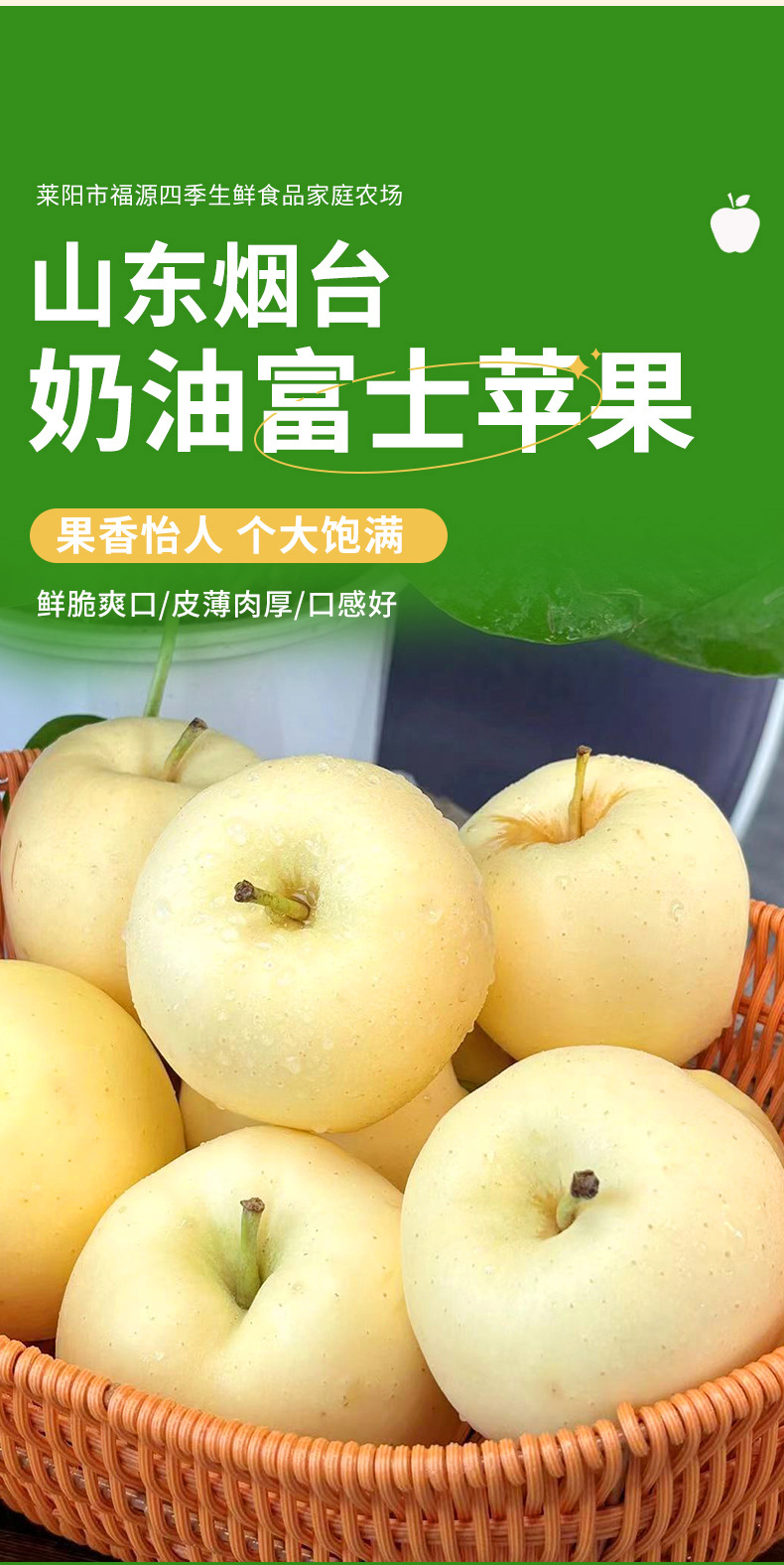 Аутентичные яблоки золотого кремового фудзи, свежие фрукты, сезонные хрустящие сладкие и сочные, целая коробка, оптовая продажа