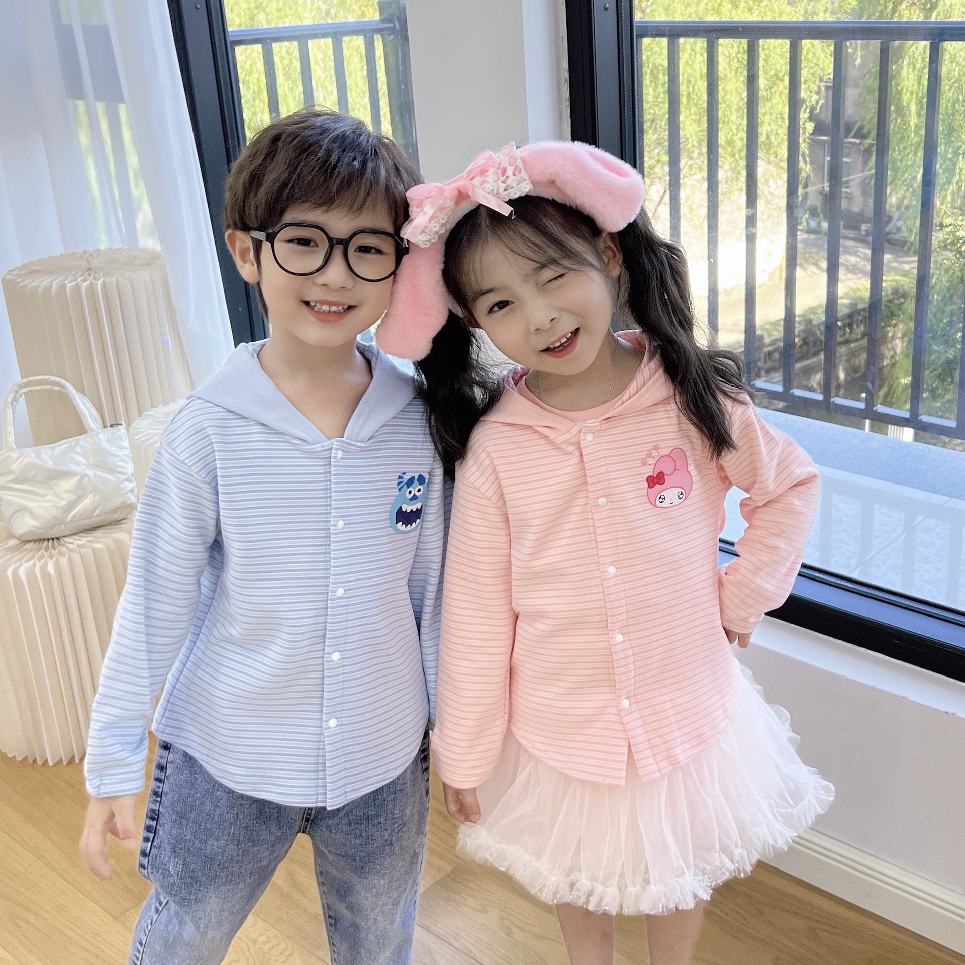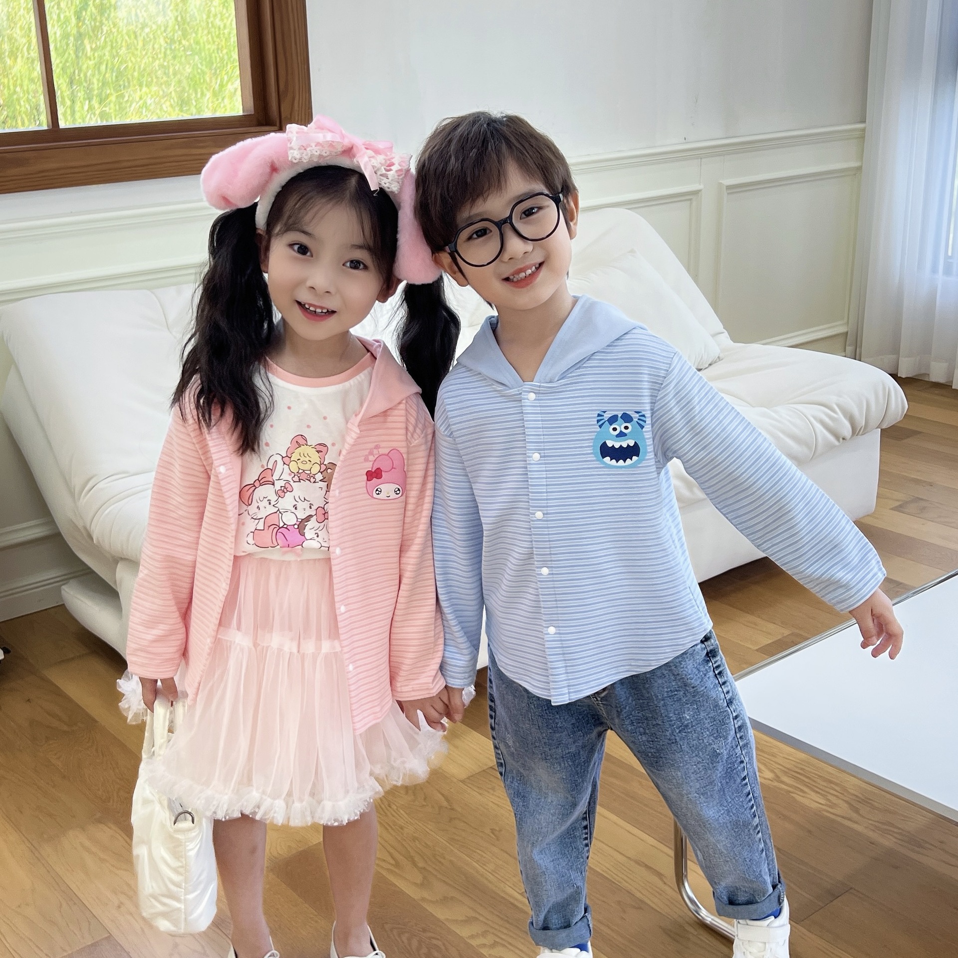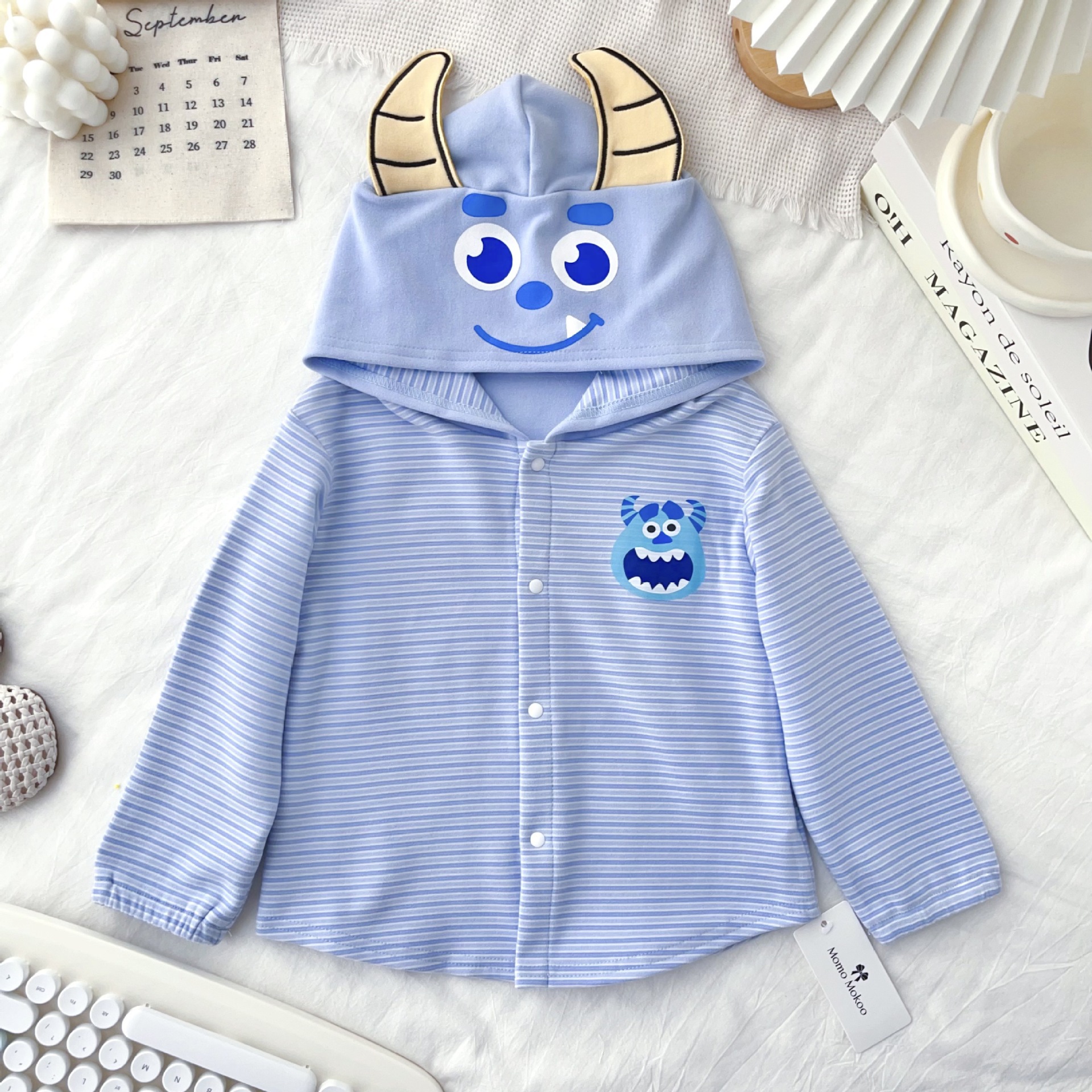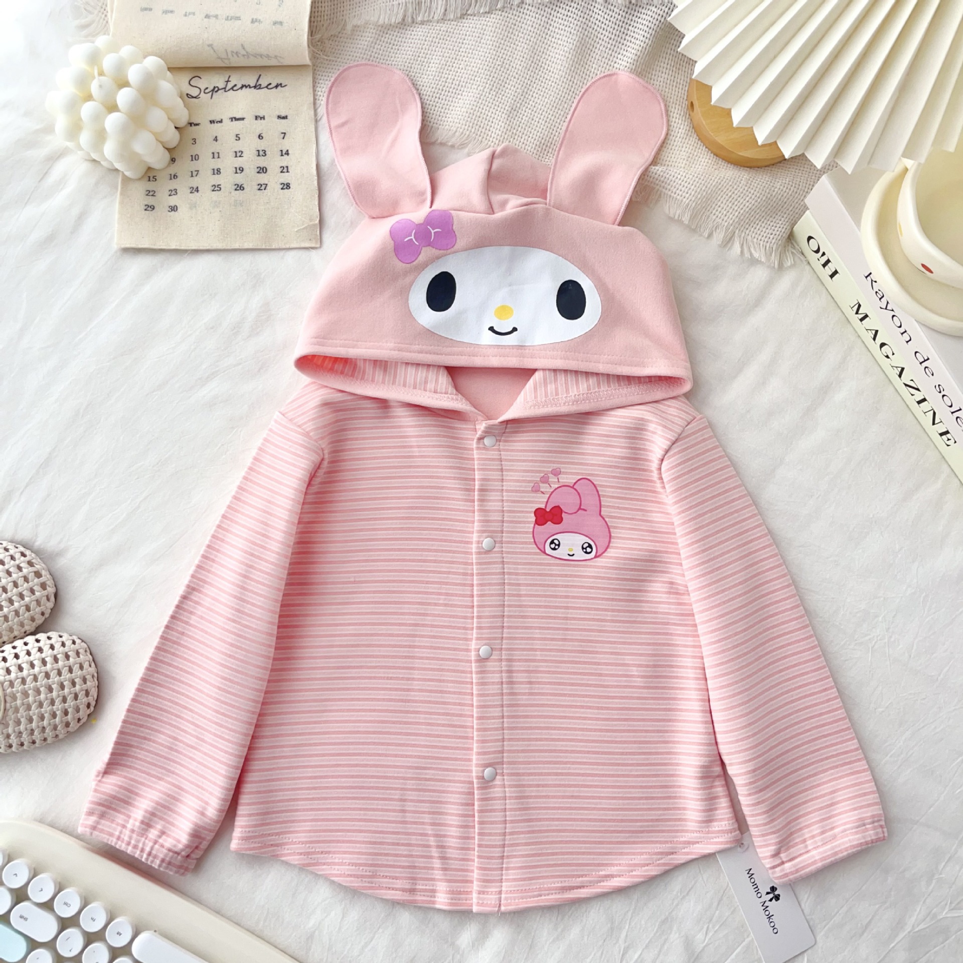 24 Детская одежда Осень Новое детское пальто для мальчиков и девочек с капюшоном, кардиган с ушками, милый осенний тонкий полосатый