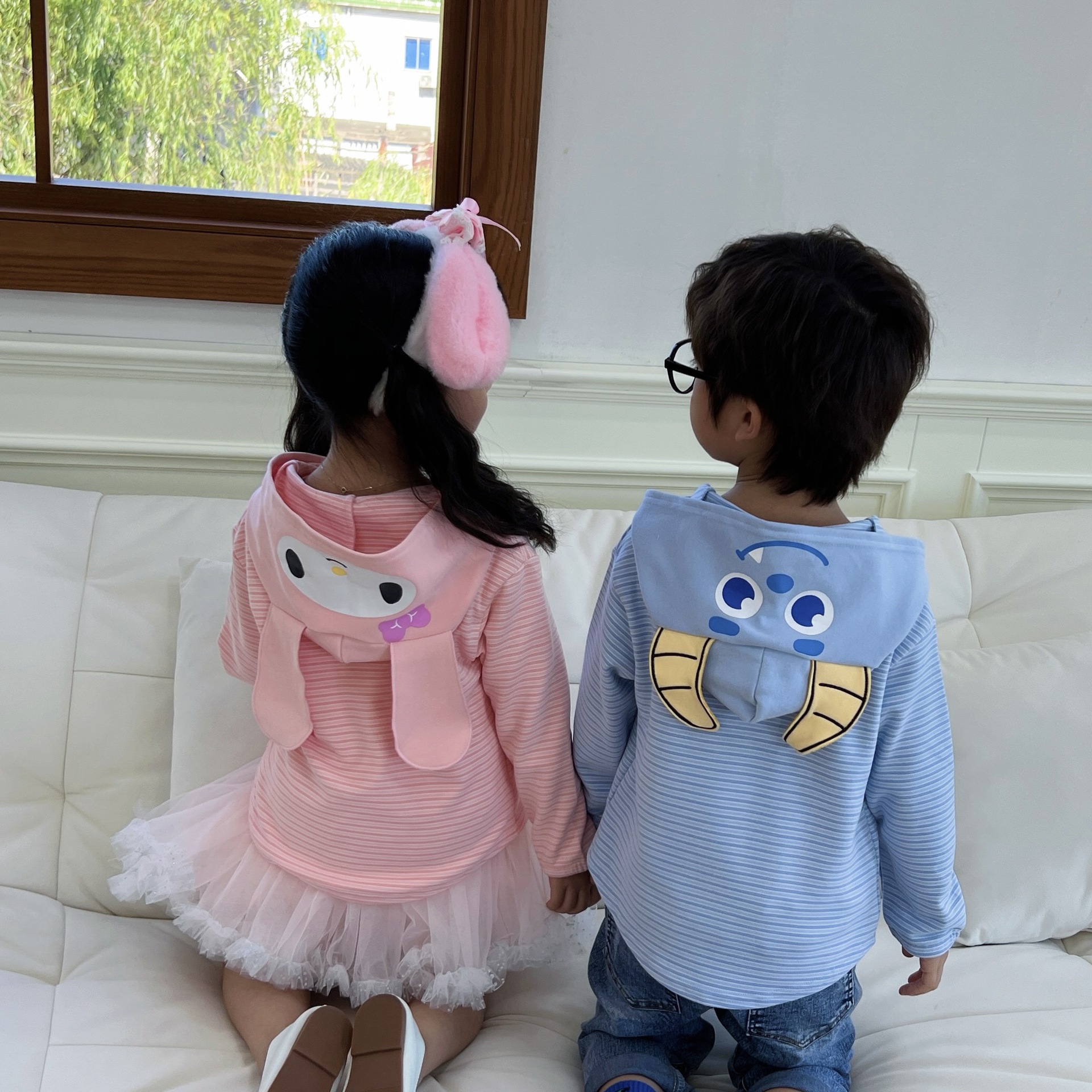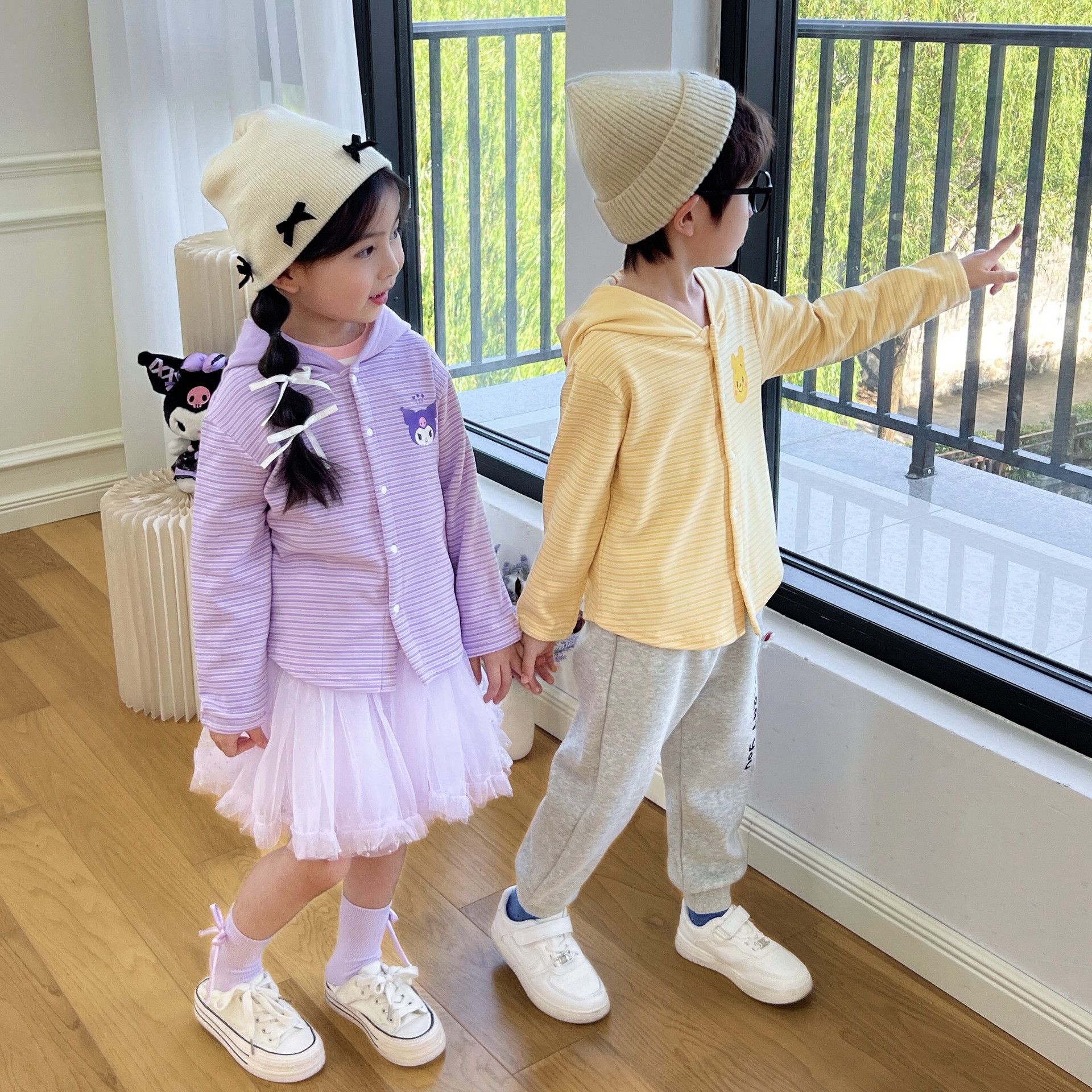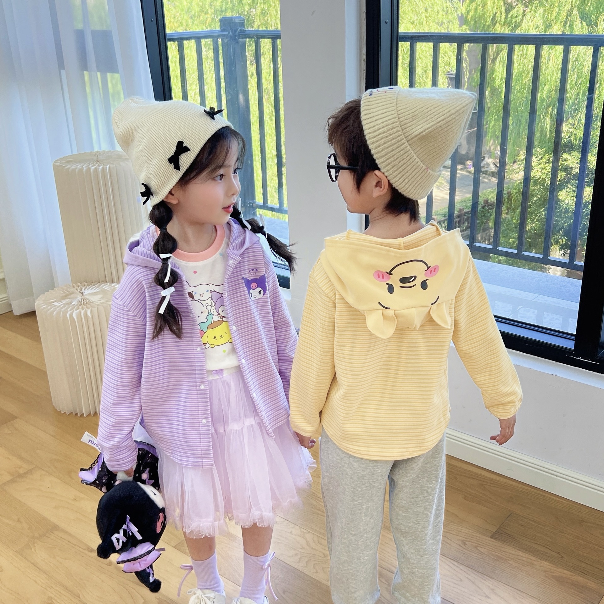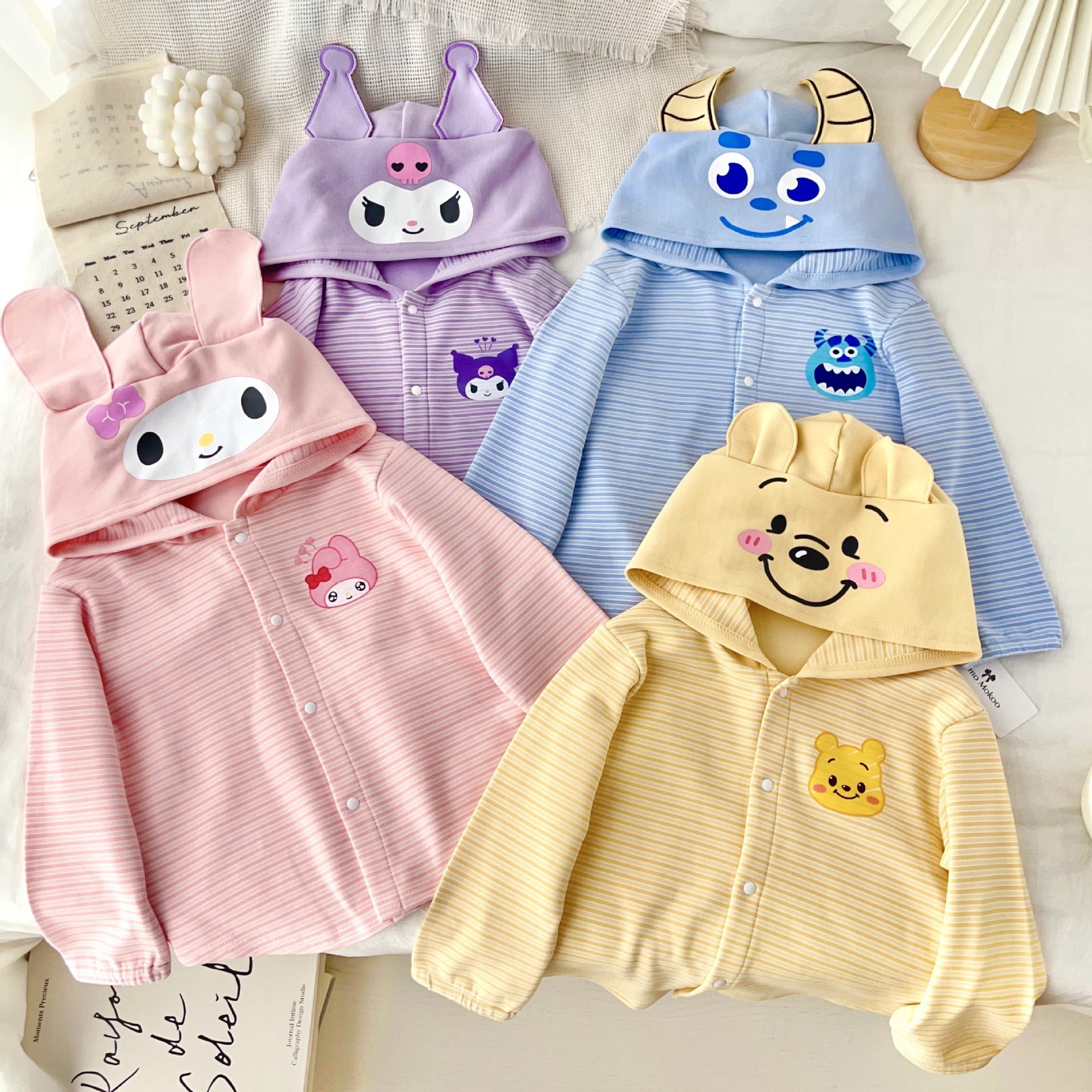 24 Детская одежда Осень Новое детское пальто для мальчиков и девочек с капюшоном, кардиган с ушками, милый осенний тонкий полосатый