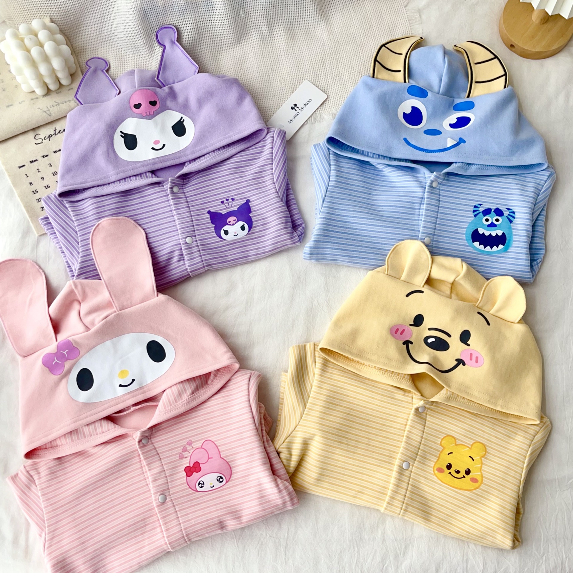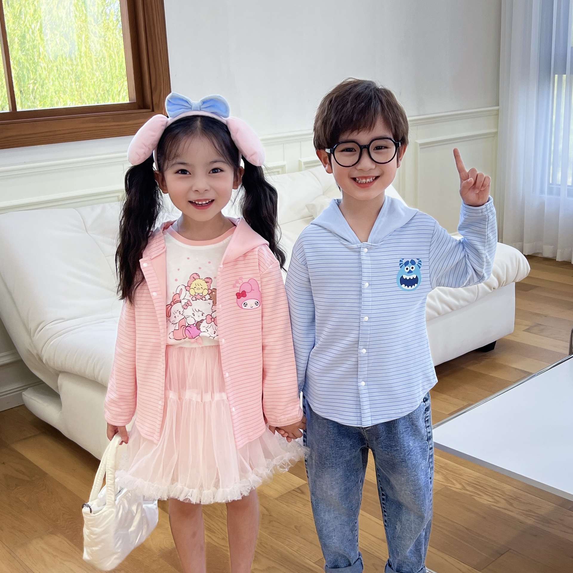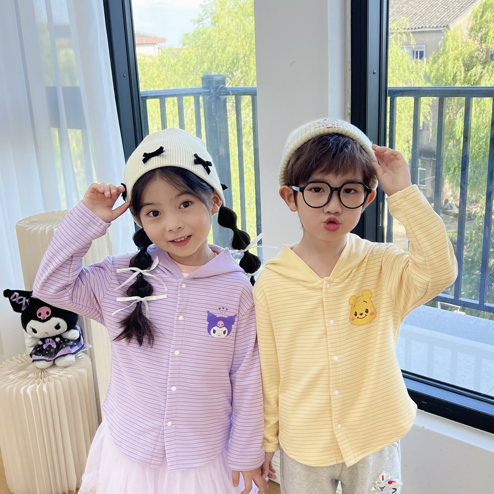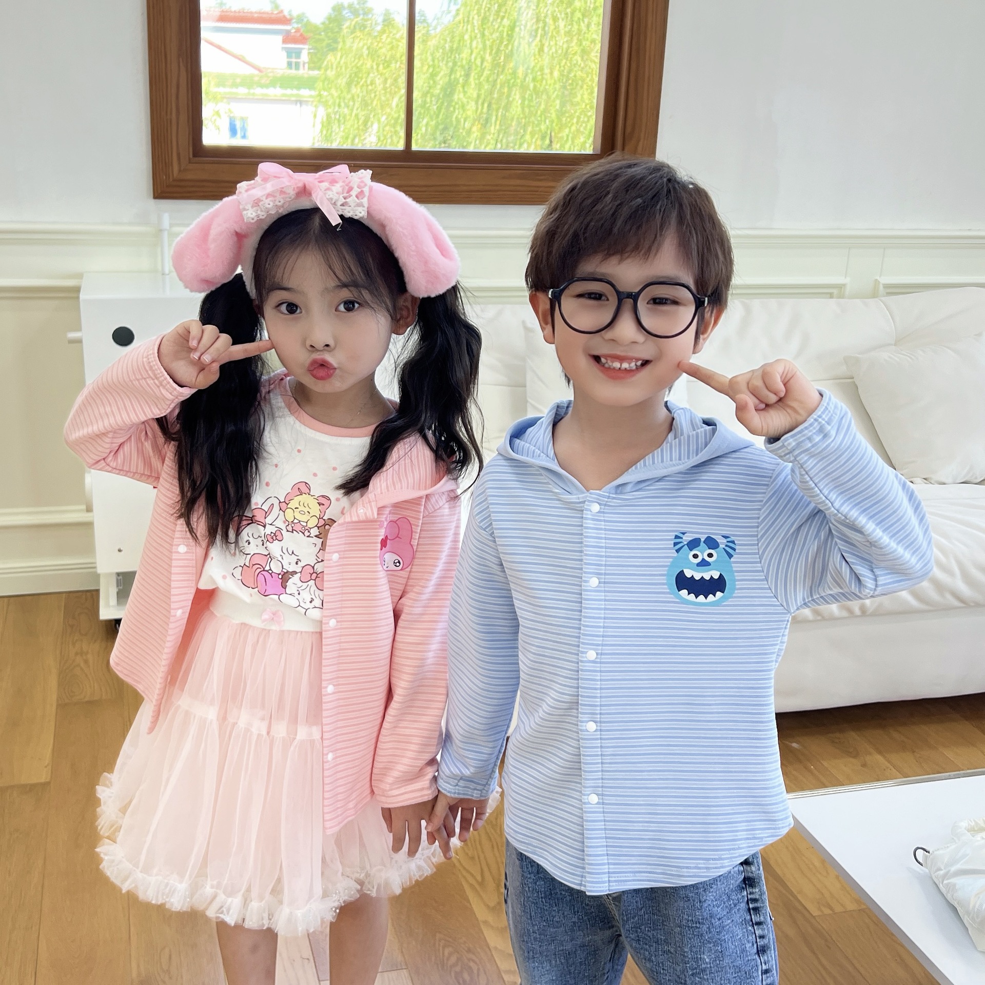 24 Детская одежда Осень Новое детское пальто для мальчиков и девочек с капюшоном, кардиган с ушками, милый осенний тонкий полосатый