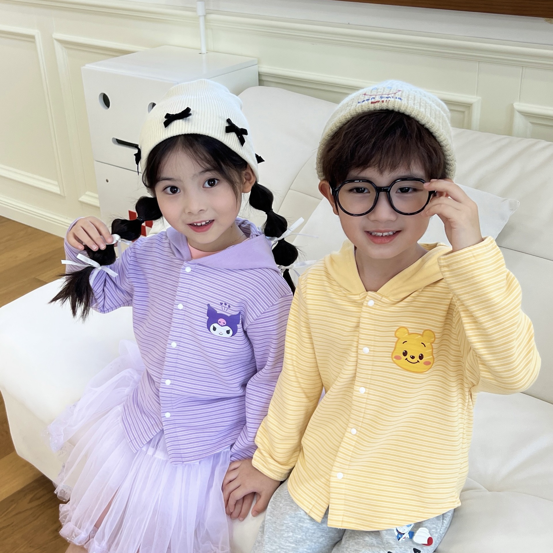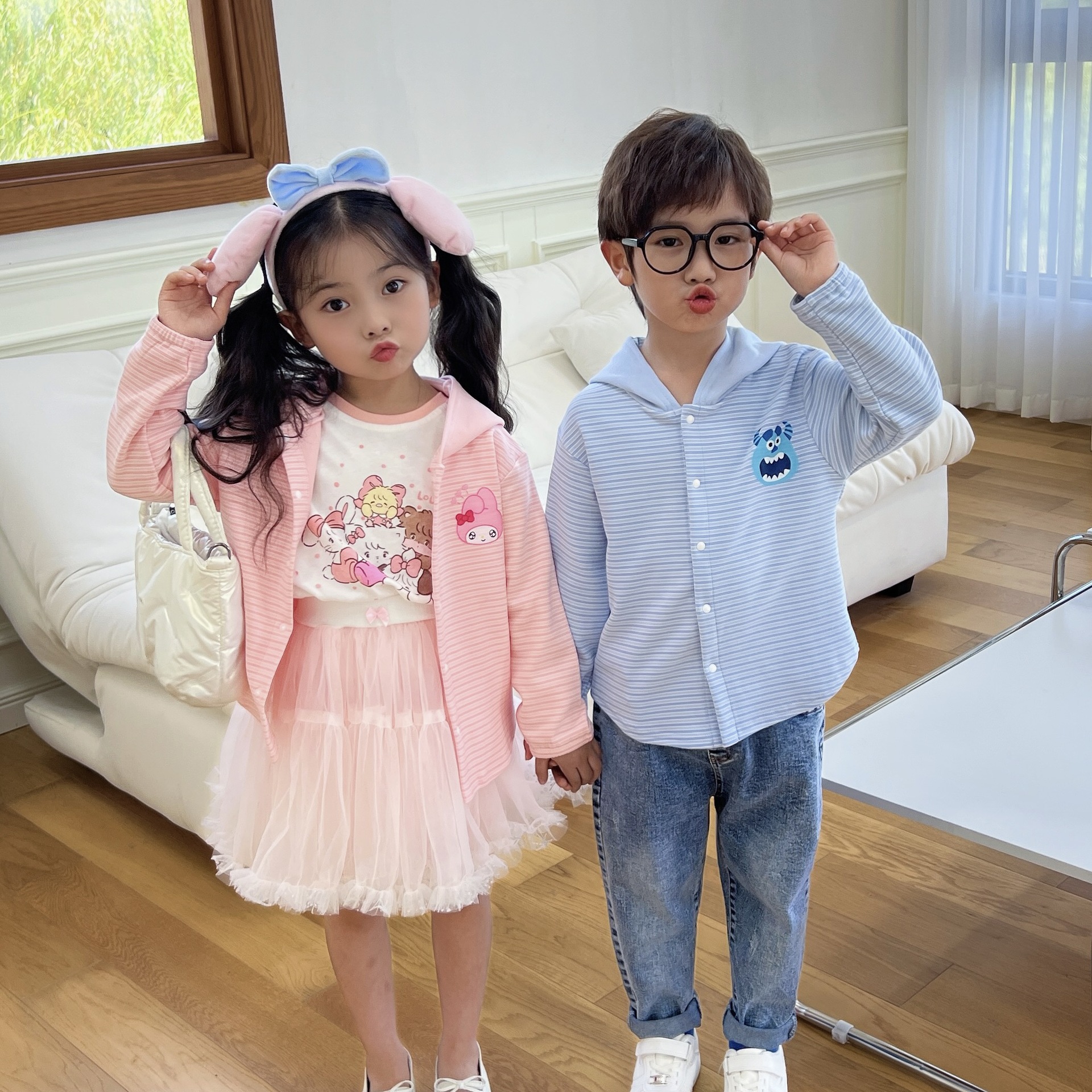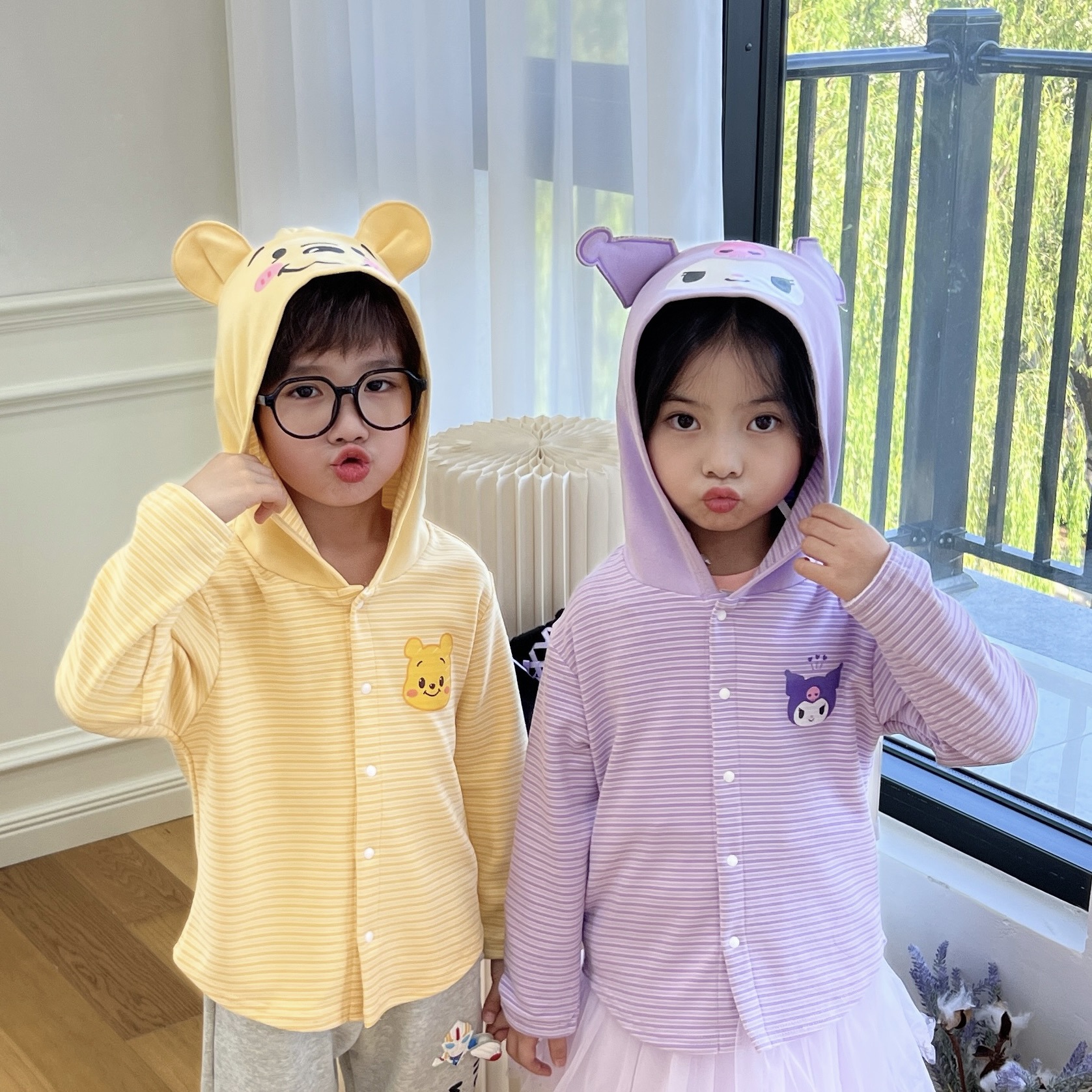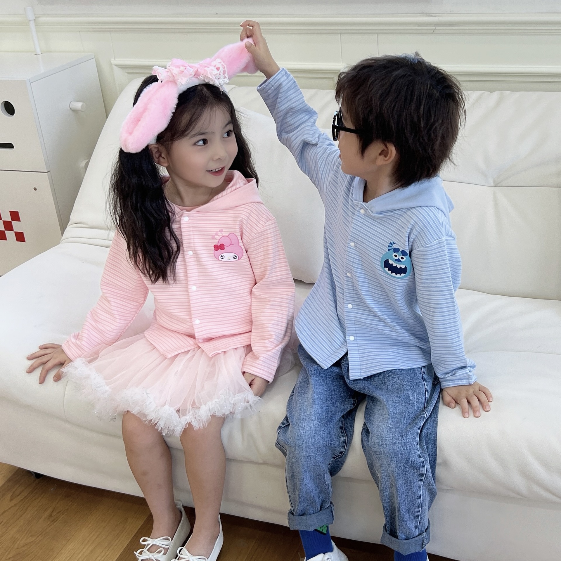 24 Детская одежда Осень Новое детское пальто для мальчиков и девочек с капюшоном, кардиган с ушками, милый осенний тонкий полосатый