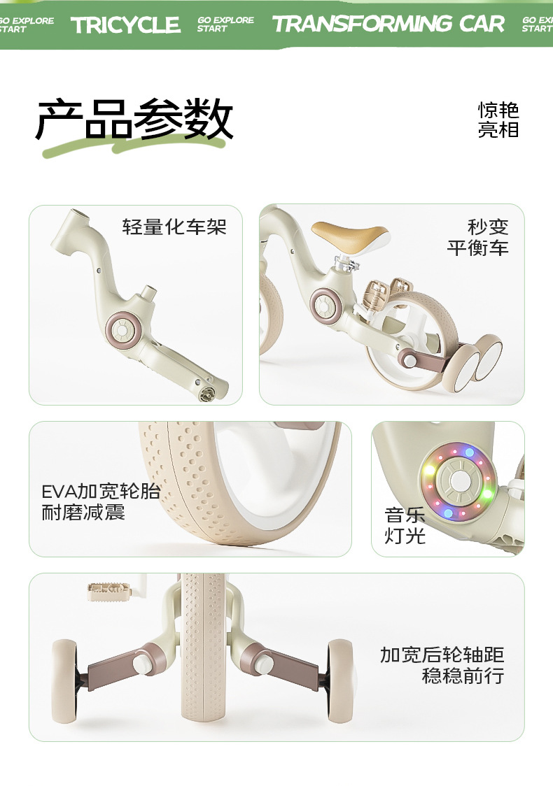 Новый многофункциональный трехколесный велосипед с музыкой и светом для детей 2-6 лет