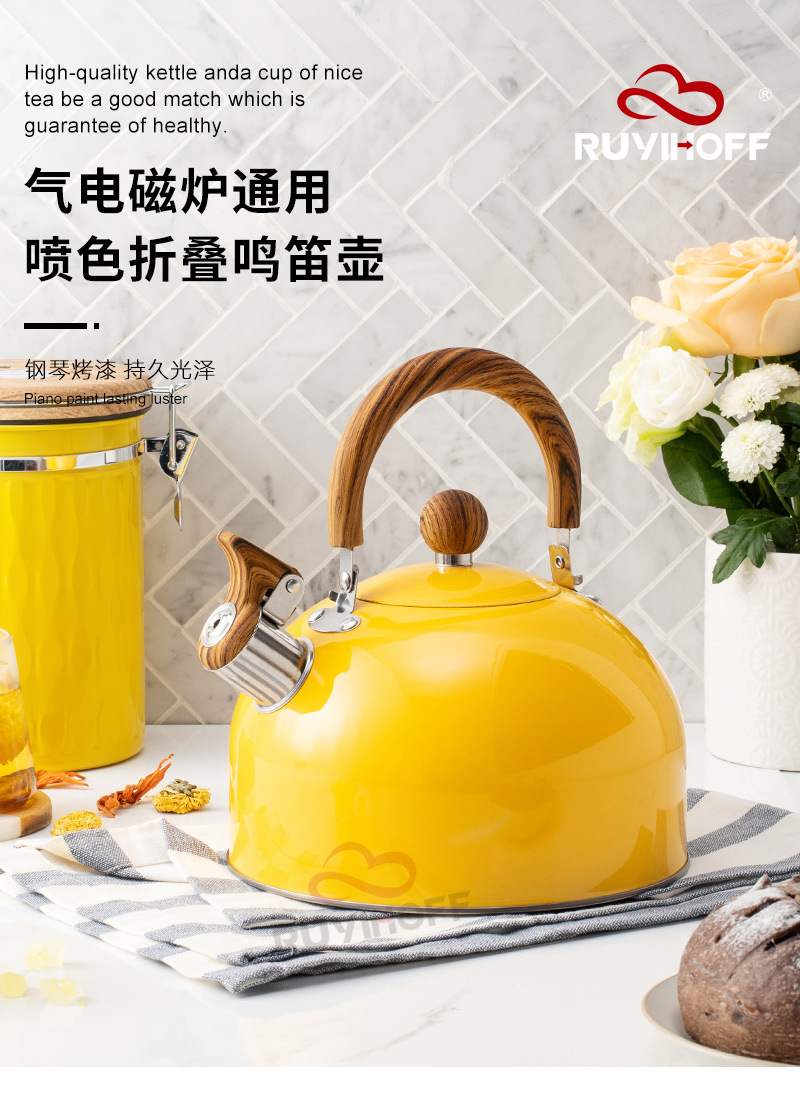 Кухонный чайник с плоским дном, свисток 3 л, желтый, для чая и кофе