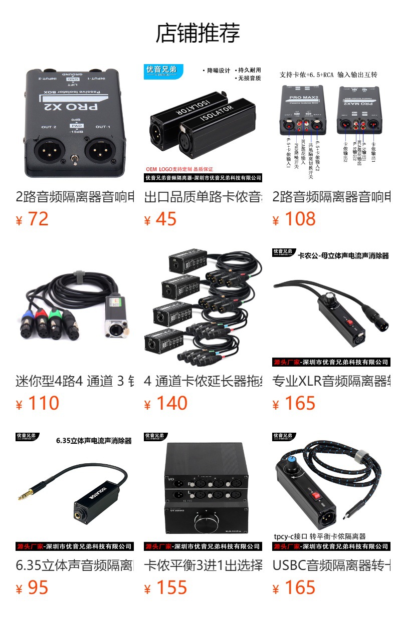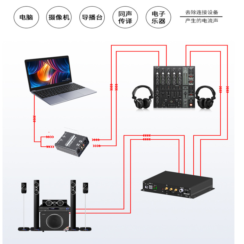Двухканальный изолятор звука, подавитель шумов звука, XLR 6.5 RCA микшер, предназначенный для прямых трансляций
