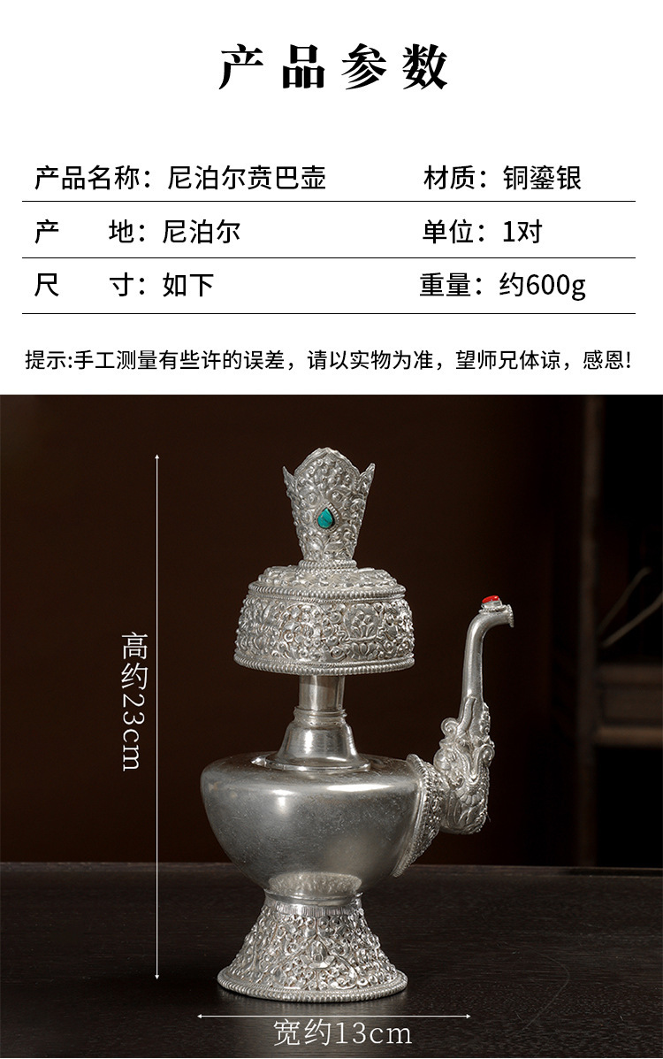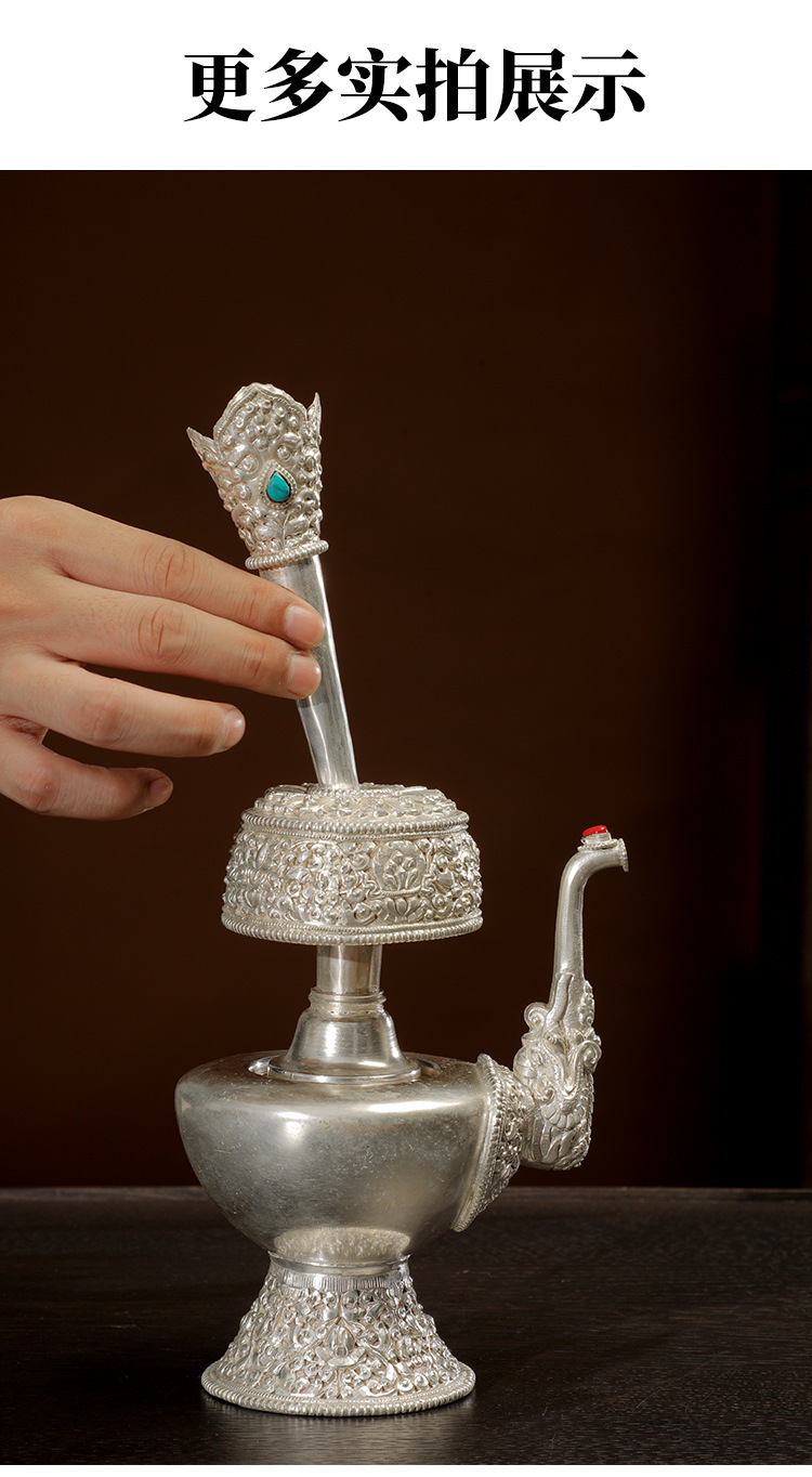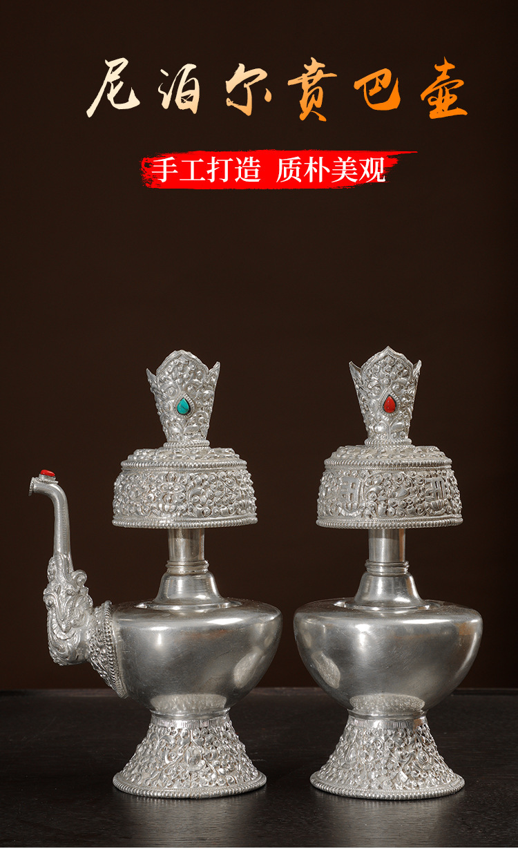 Медная посуда с серебряным покрытием, резная чаша для воды, домашние тибетские украшения