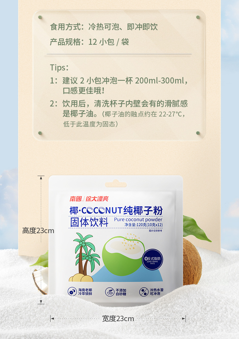 Специальность Хайнань Nanguo food 120г чистый кокосовый порошок Кокосовое молоко Напиток на завтрак Порошок кокосового молока