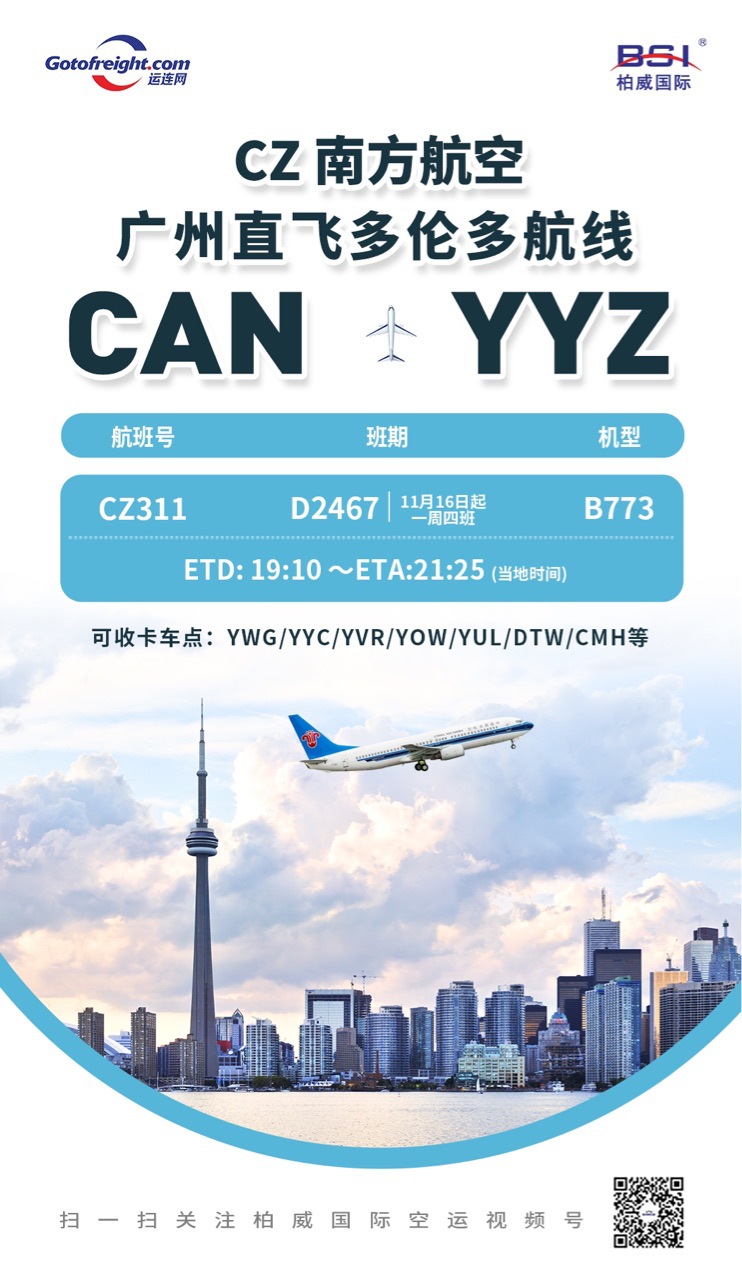 Прямой рейс China Southern Airlines в Торонто, Канада, международные авиаперевозки, номер телефона Wechat 18824186321