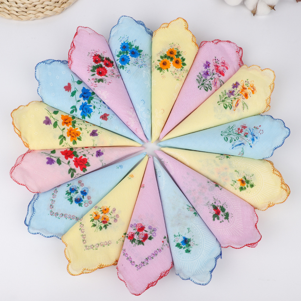 经典月牙边女士热销批发纯棉手帕老式复古款手绢薄款跨境产品29cm