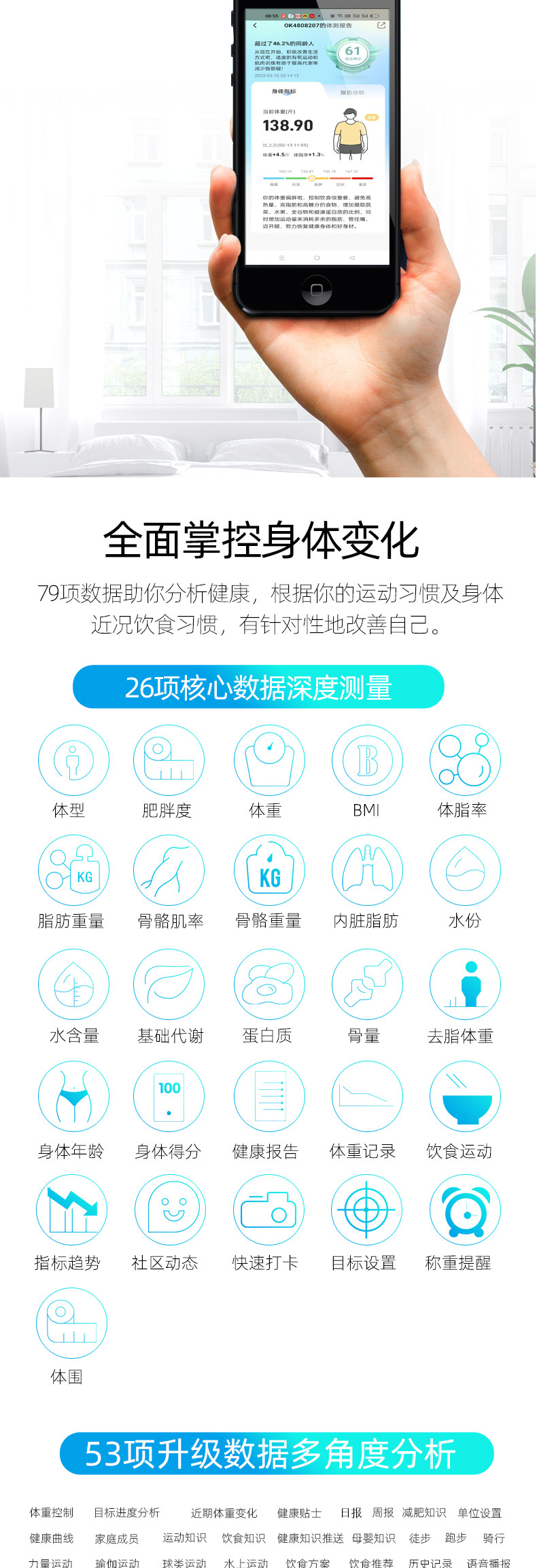 Дополнительные функции Human body fat and water testing
