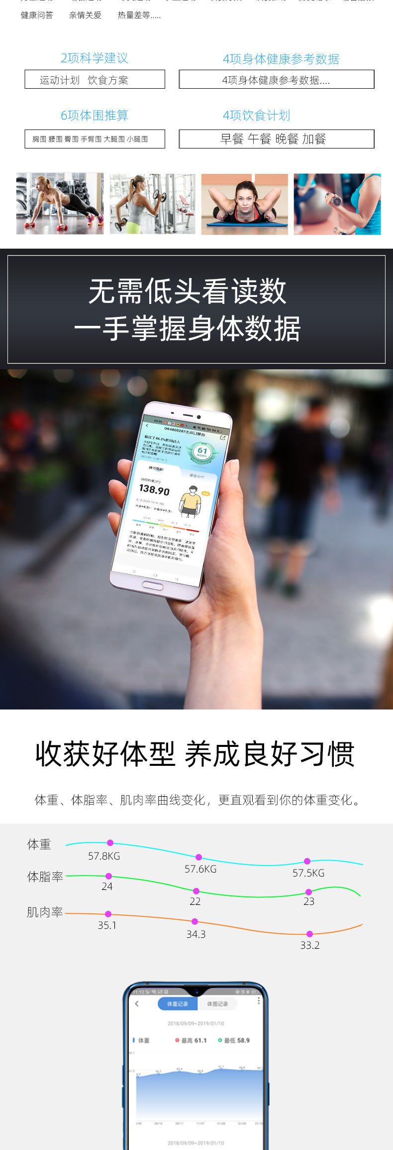 Умные весы для определения жира с USB зарядкой, электронные весы для ванной, высокая точность