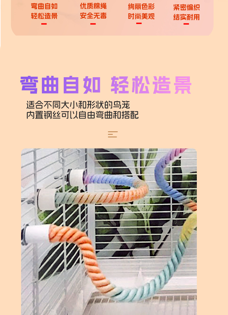 Качели для попугаев с цветным канатом, фиксированная форма, доставка по всей сети