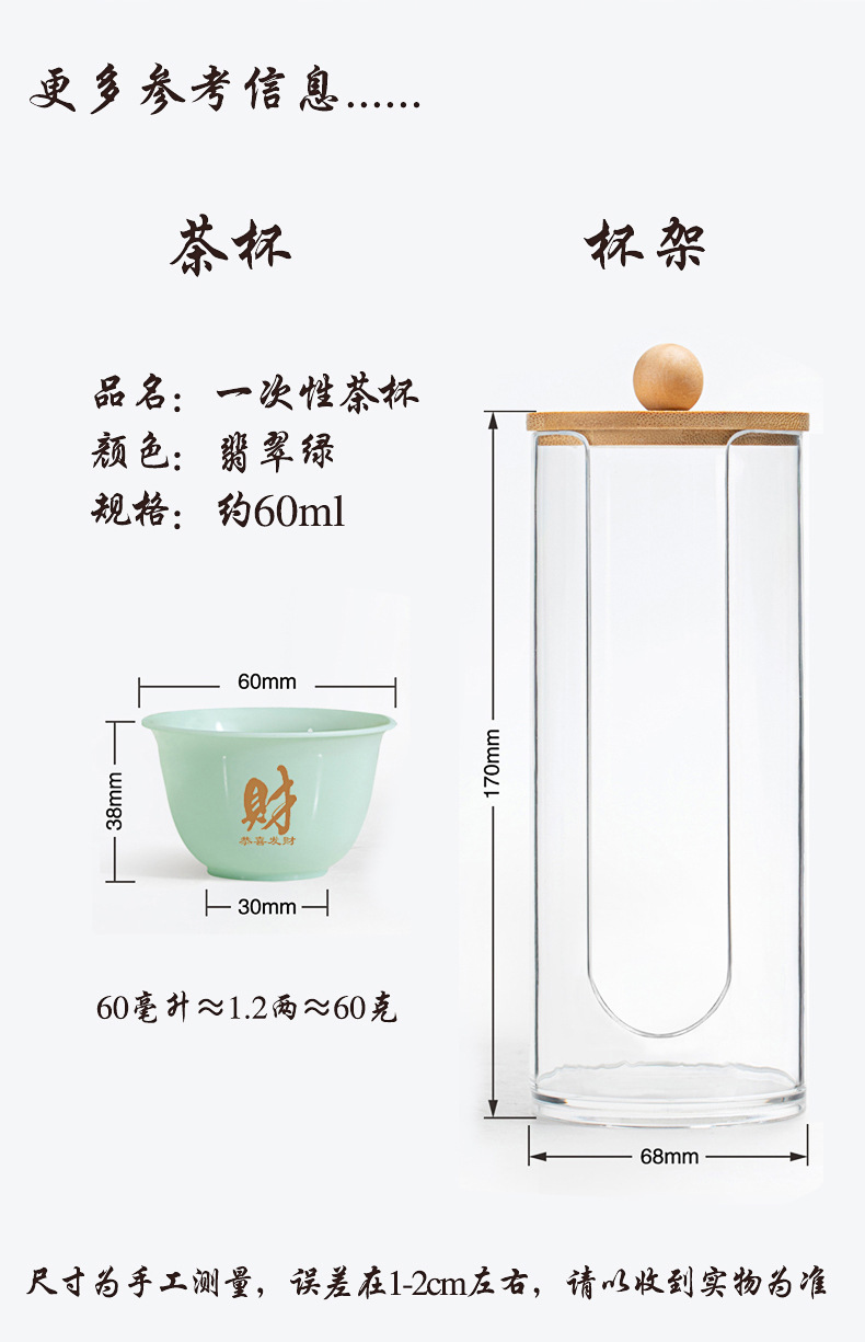 ![]() | 1 barrel (50 pieces) + green cup holder | Emerald green disposable tea cup (auspicious character) | ¥17.0 / ≈ 207 ₽ | 10000 | 5748454396078 |