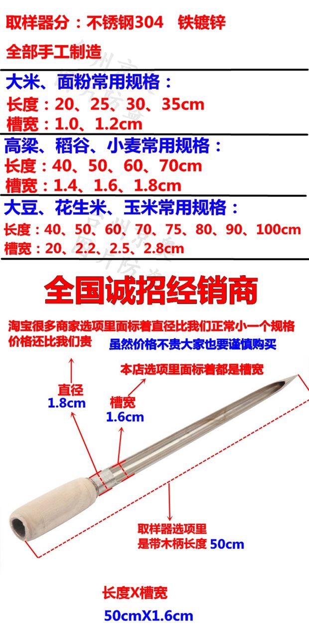 Пробоотборник для зерна из нержавеющей стали, зонд для порошков и гранул, кукуруза, пшеница, рис, резак для упаковки