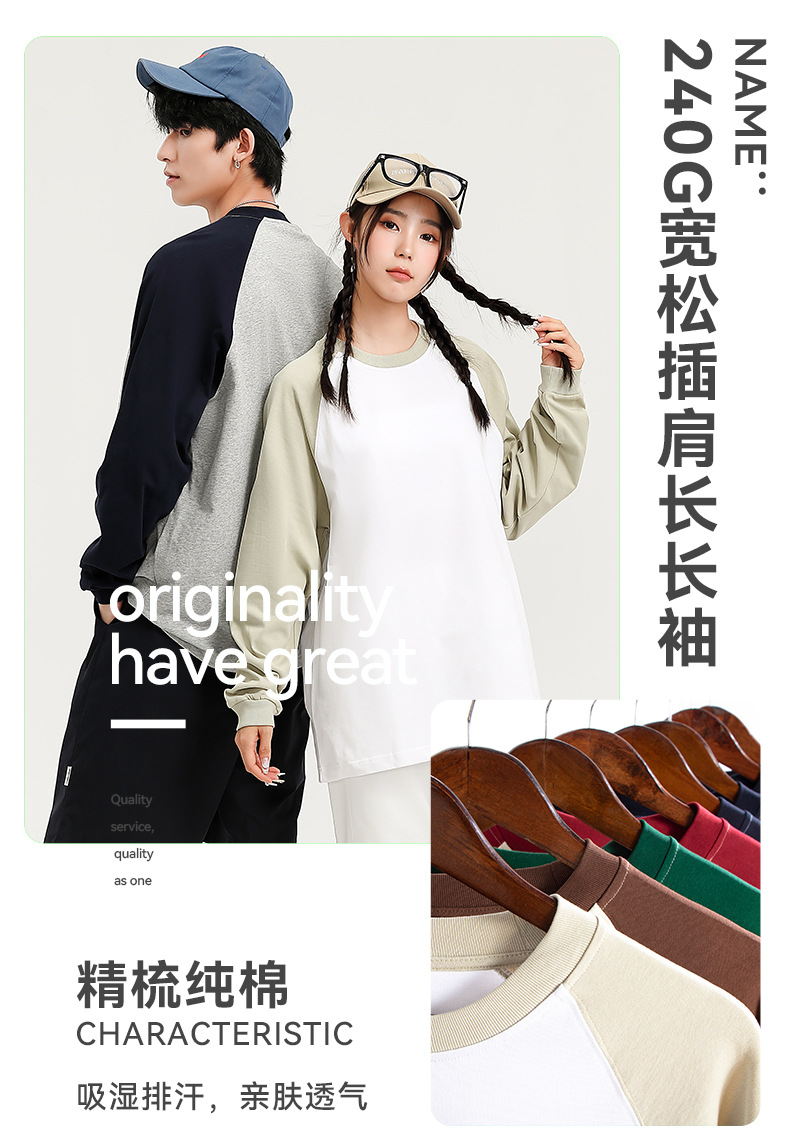 Парная повседневная свободная футболка с регланом для мужчин и женщин 240г чистый хлопок длинный рукав базовая рубашка новая модная круглый вырез