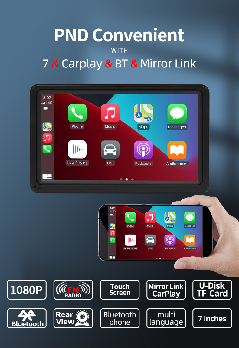 Беспроводной экран Carplay 7 дюймов / 10.26 дюймов для навигации в автомобиле с высоким разрешением и изображением заднего вида