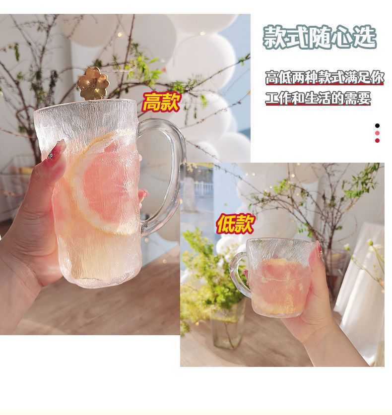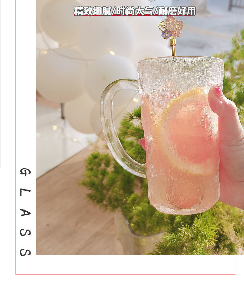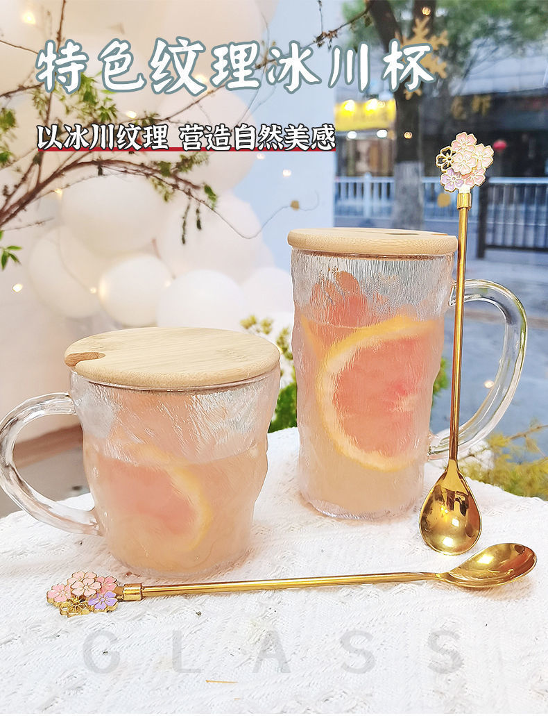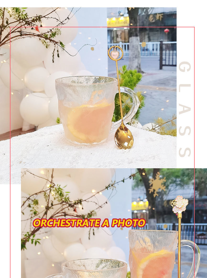 Стеклянный стакан с ручкой и ложкой в стиле Ins, стакан с ледниковым узором, женский стакан для молочного кофе