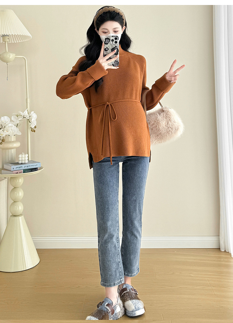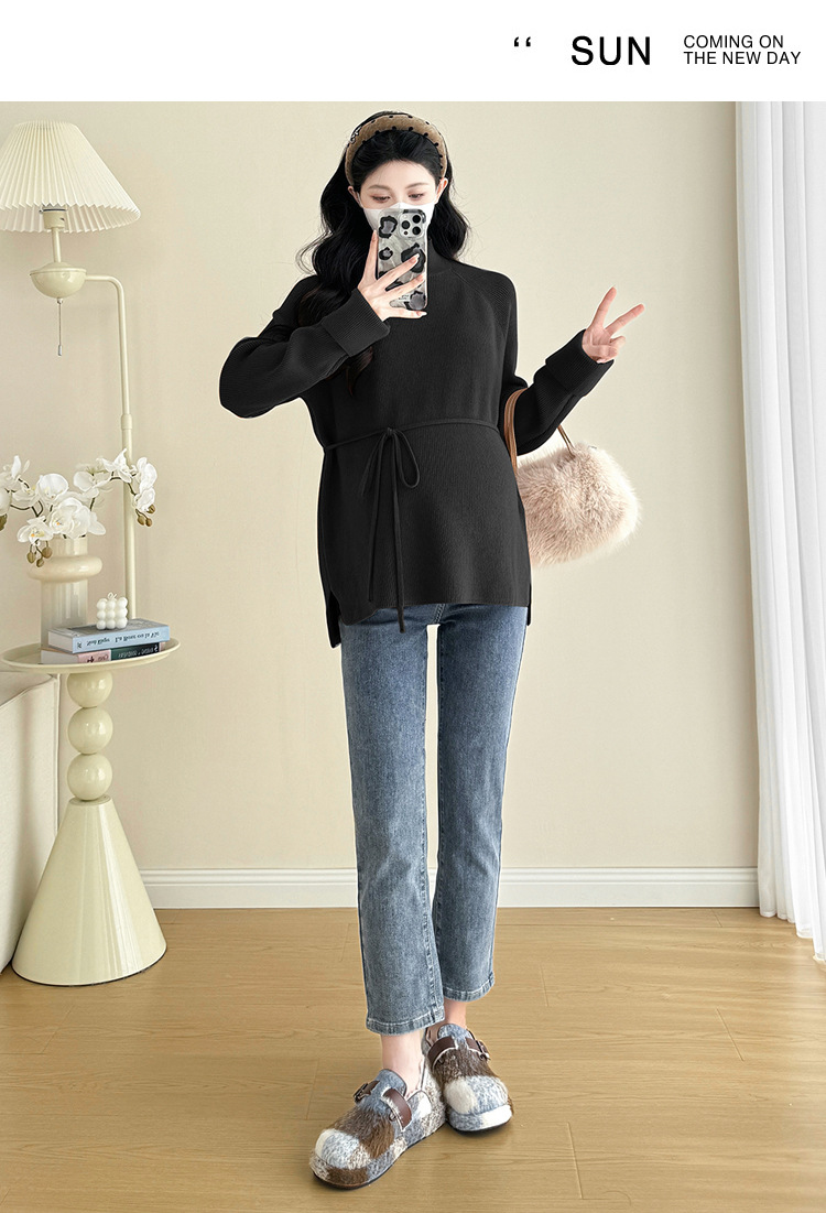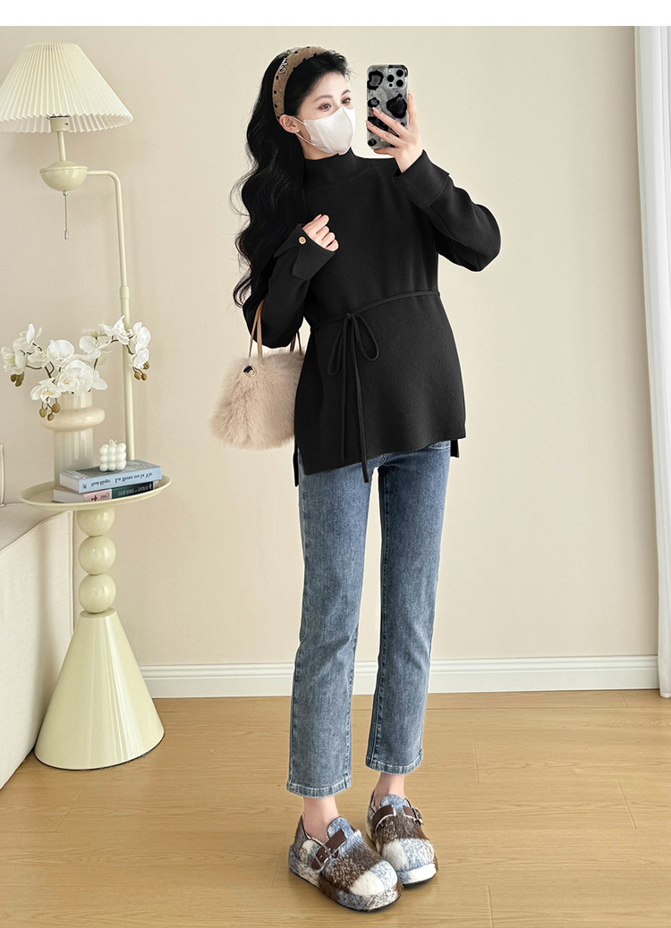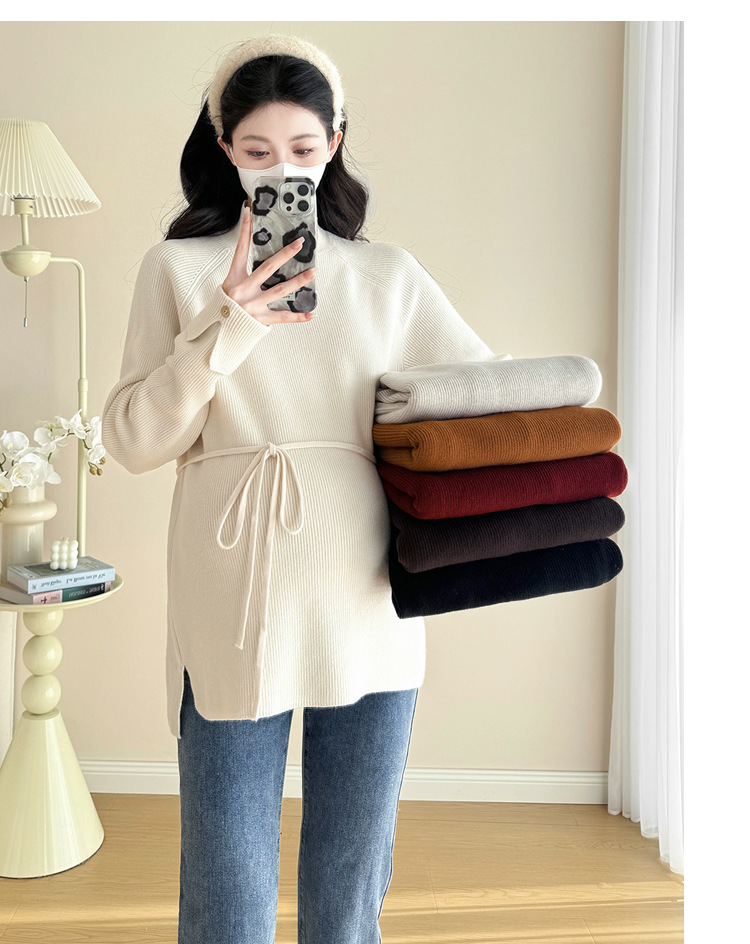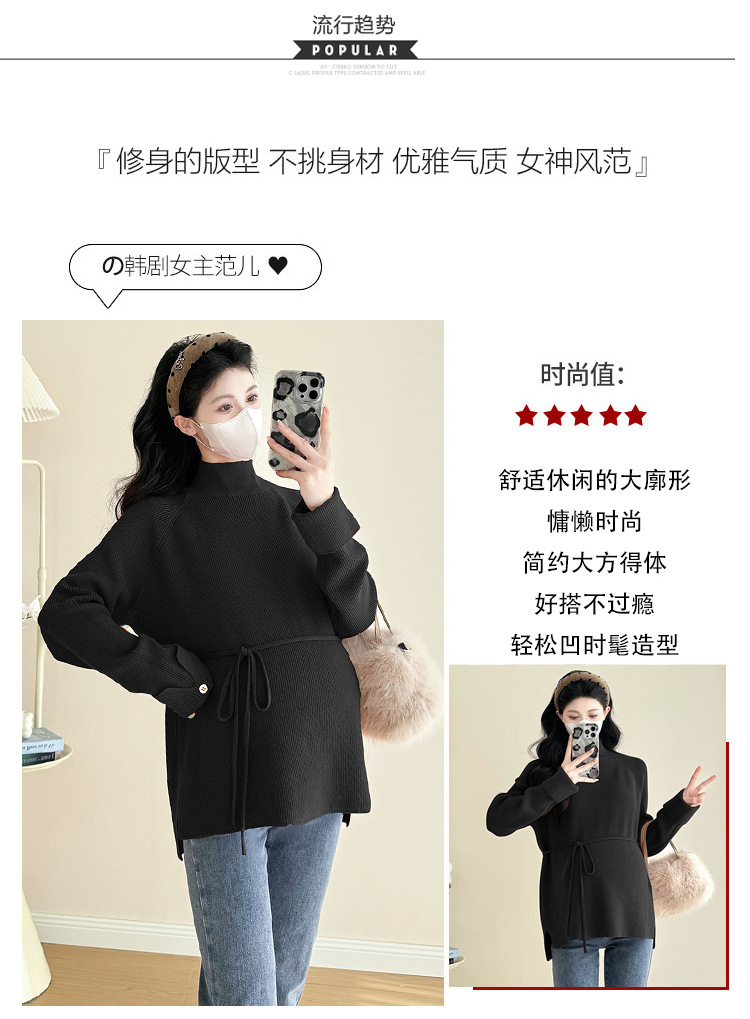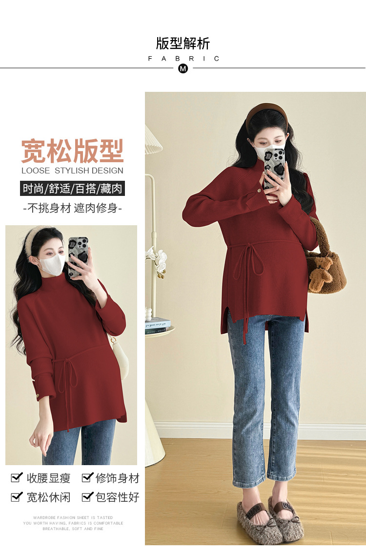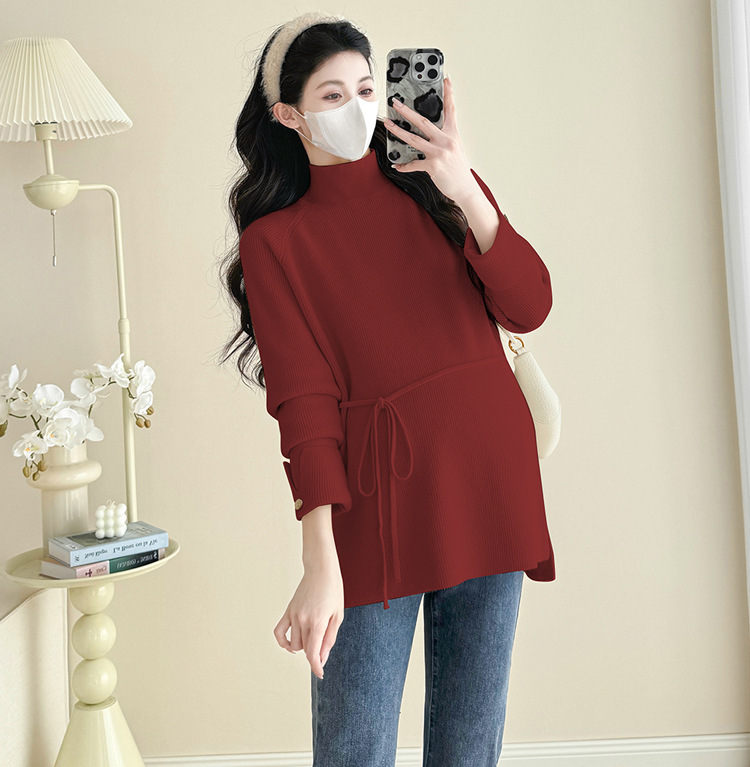 Одежда для беременных базовая футболка 2024 новая осень и зима свитер модный западный стиль