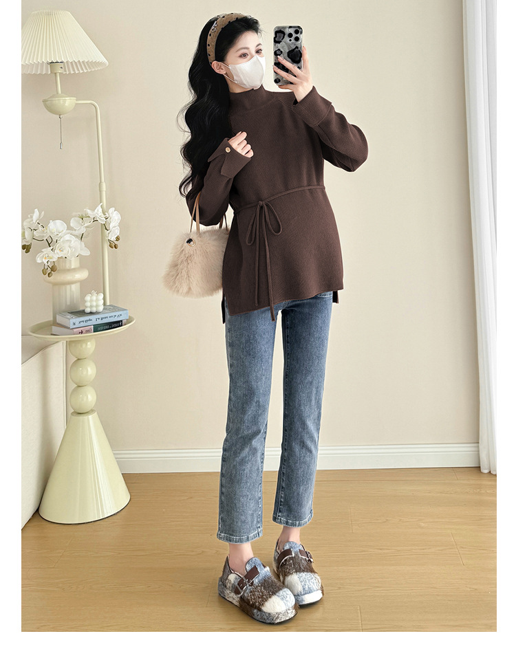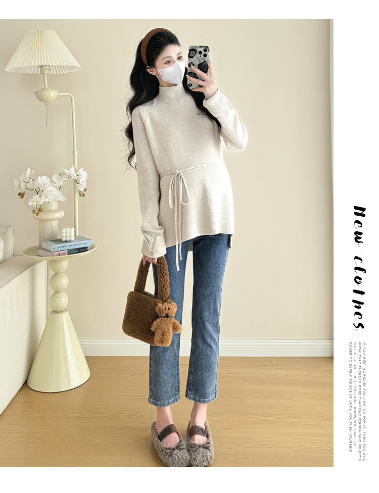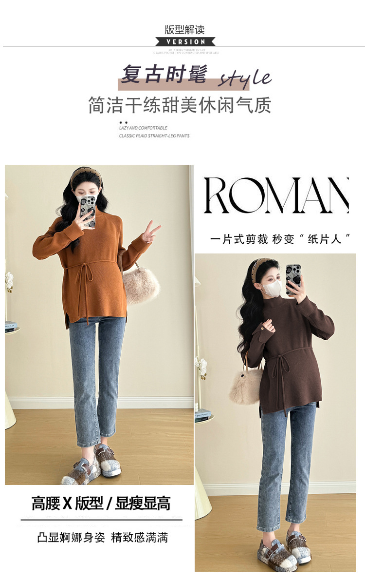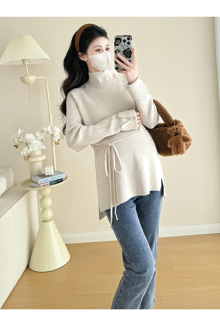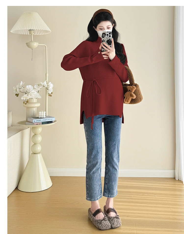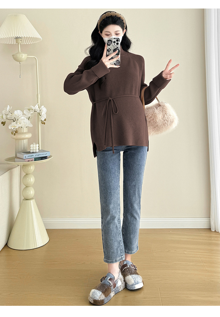 Одежда для беременных базовая футболка 2024 новая осень и зима свитер модный западный стиль
