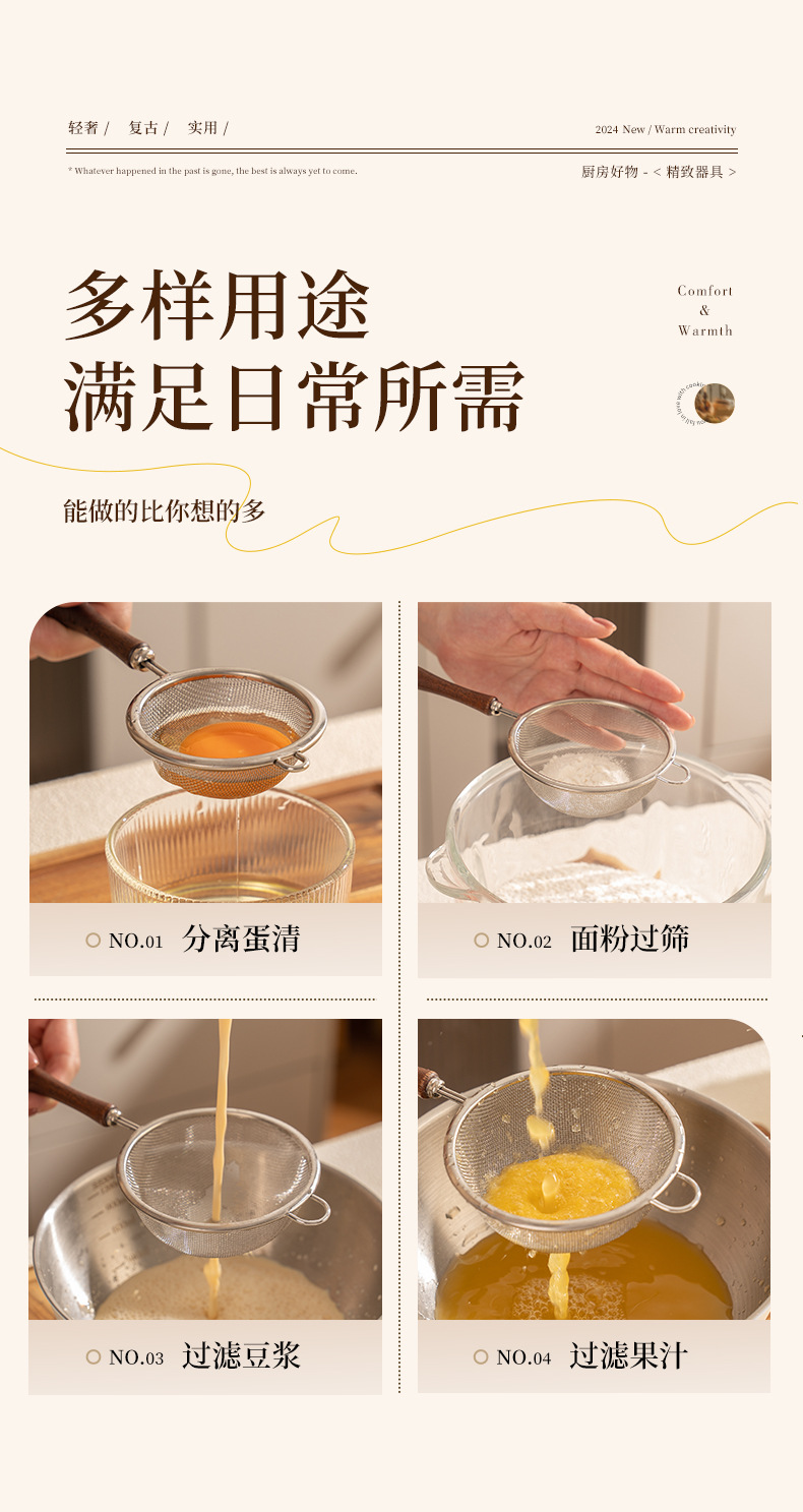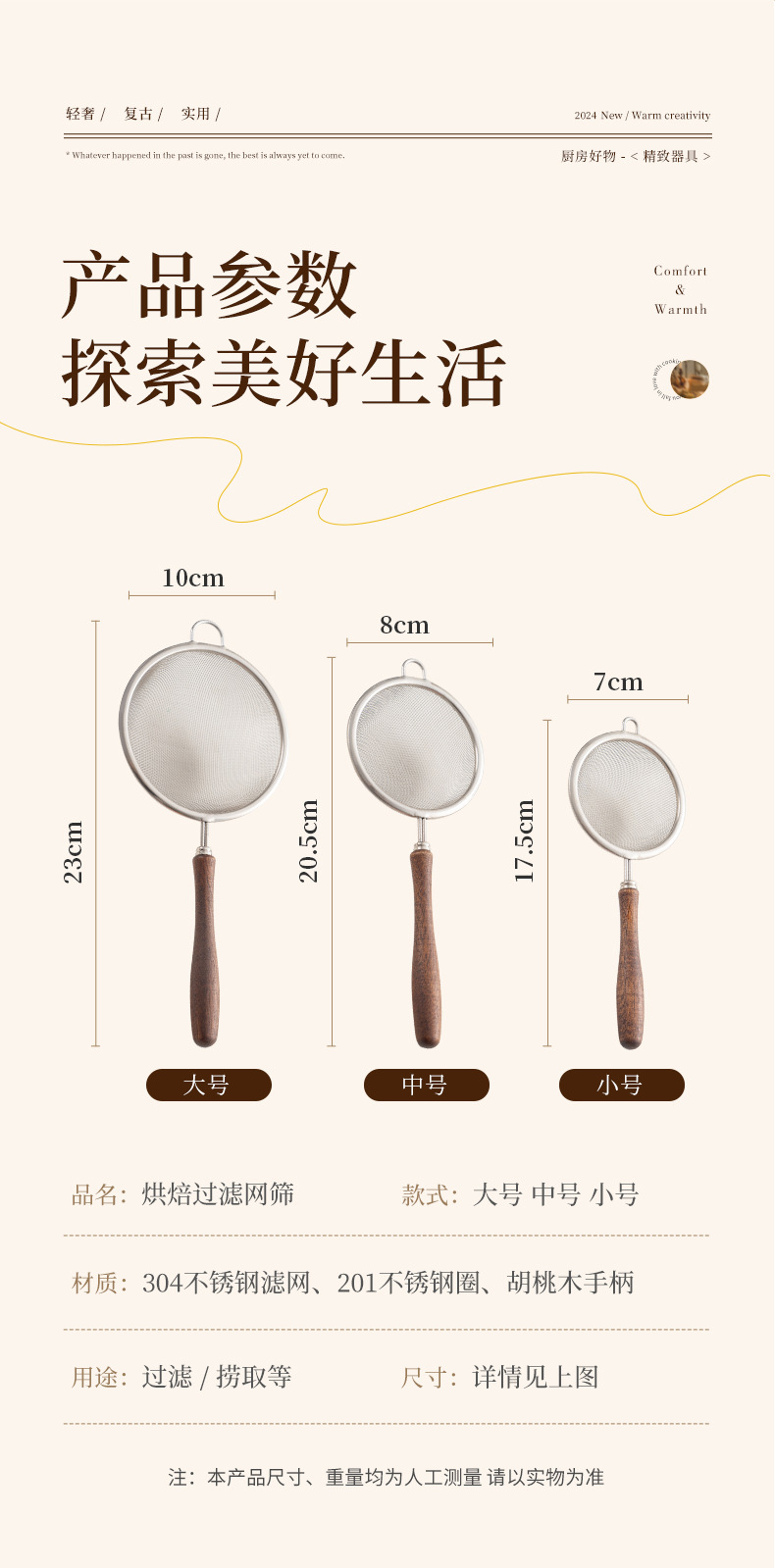 Деревянная ручка 304 нержавеющая сталь маленькое сито фильтр для соевого молока сока остатка чая инструменты для выпечки