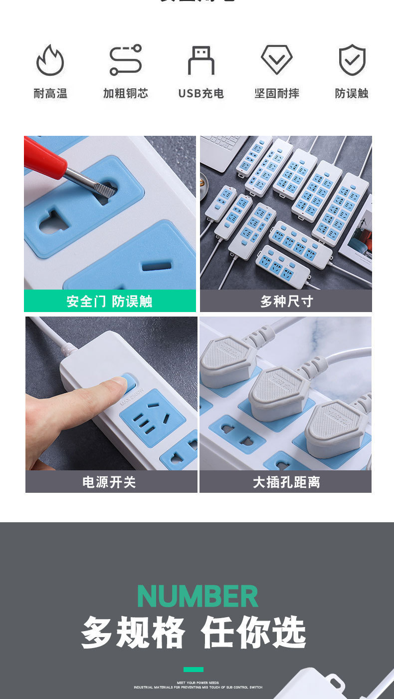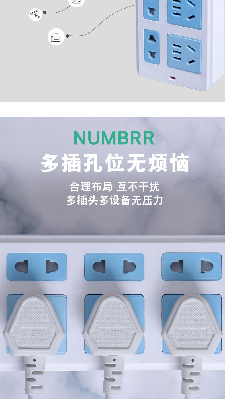 Многофункциональная настенная розетка с кабелем, высокомощная, для общежитий, в наличии