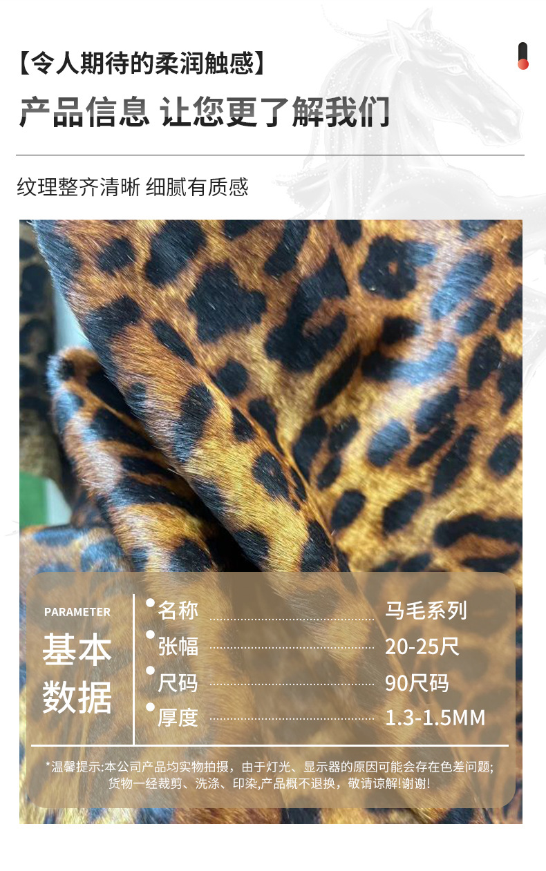 Готовые запасы, принт под леопарда, натуральная лошадина шерсть, интегрированная целая листовая кожа, различные спецификации