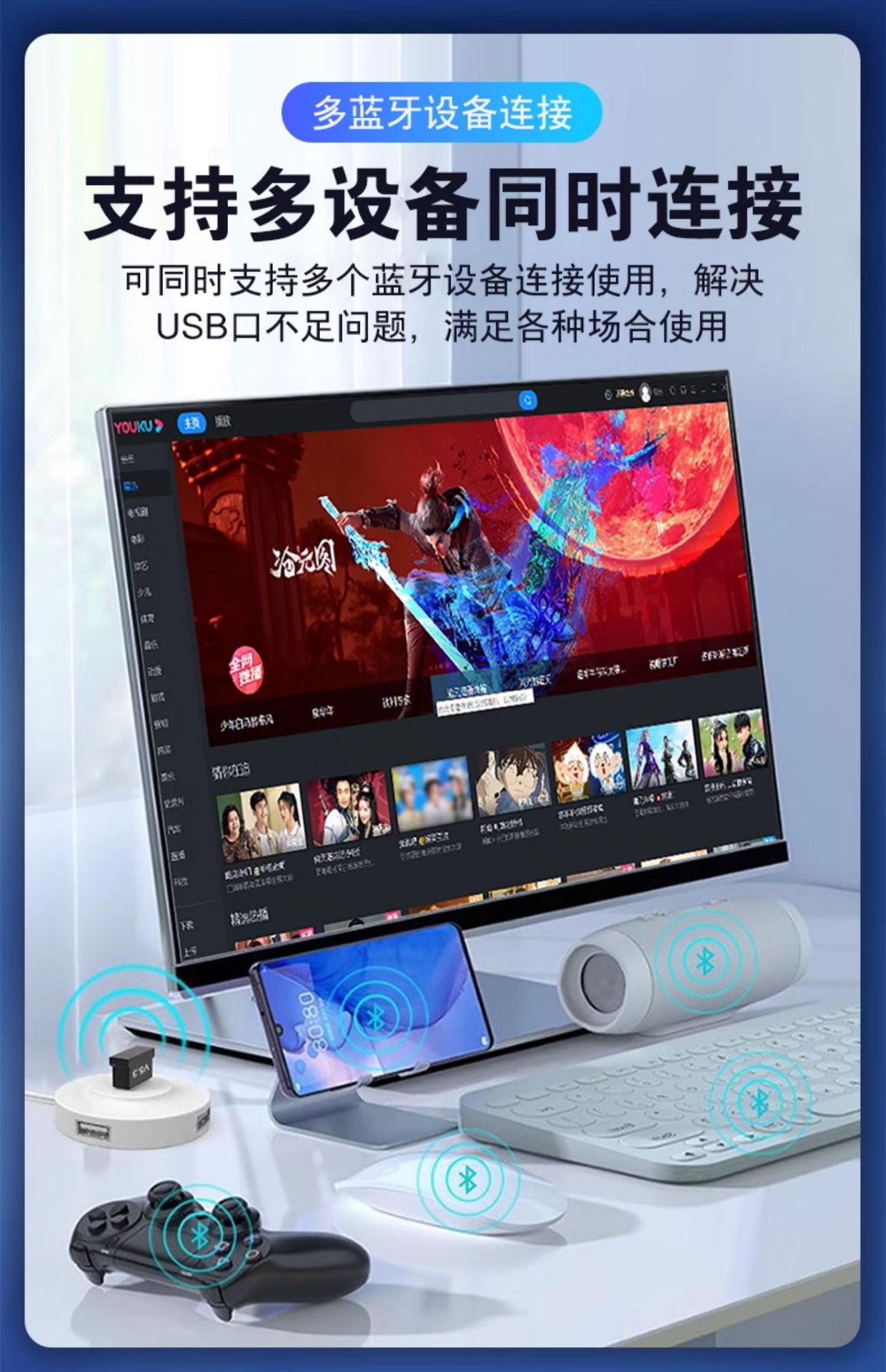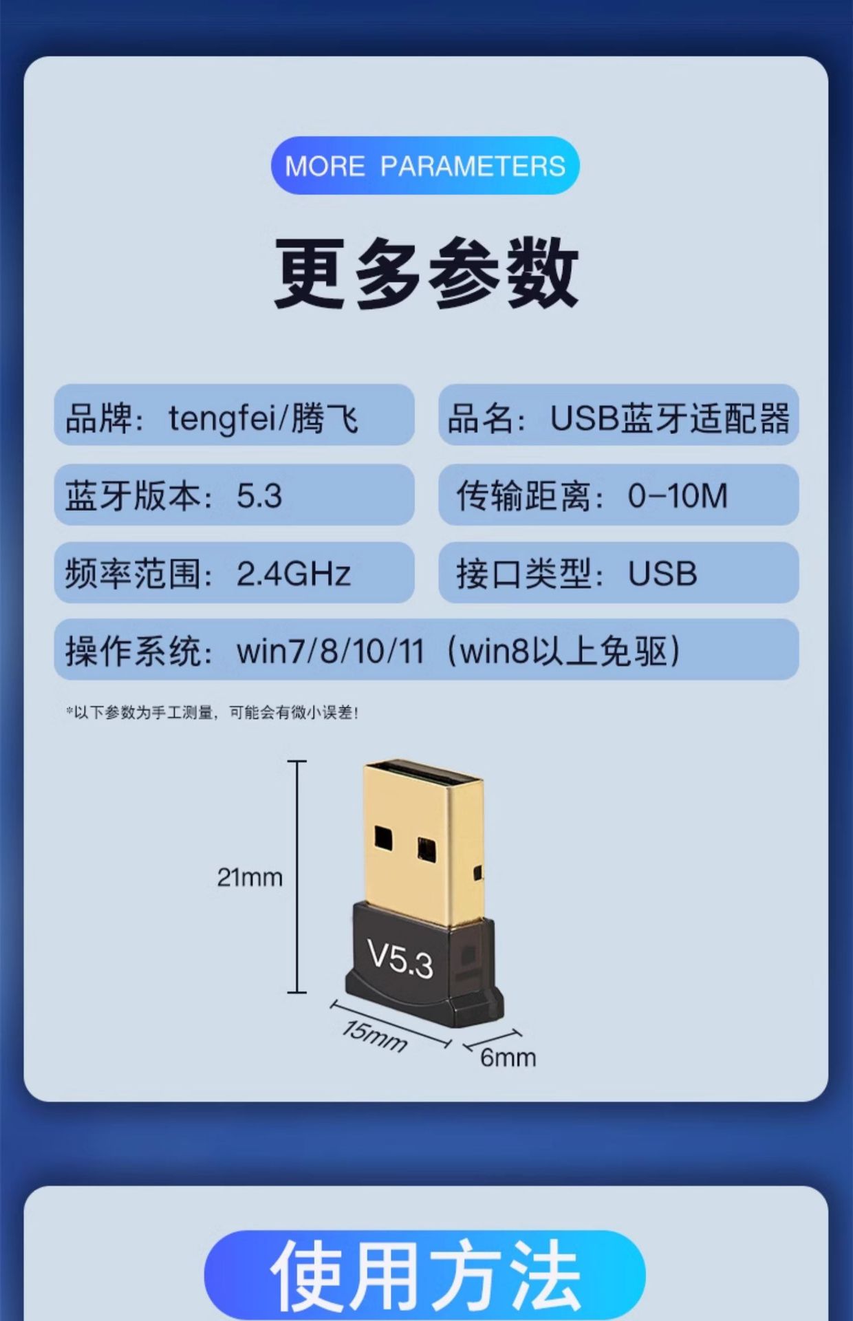 Адаптер Bluetooth 5.3, USB адаптер для настольного компьютера, беспроводной аудио приемник без драйверов