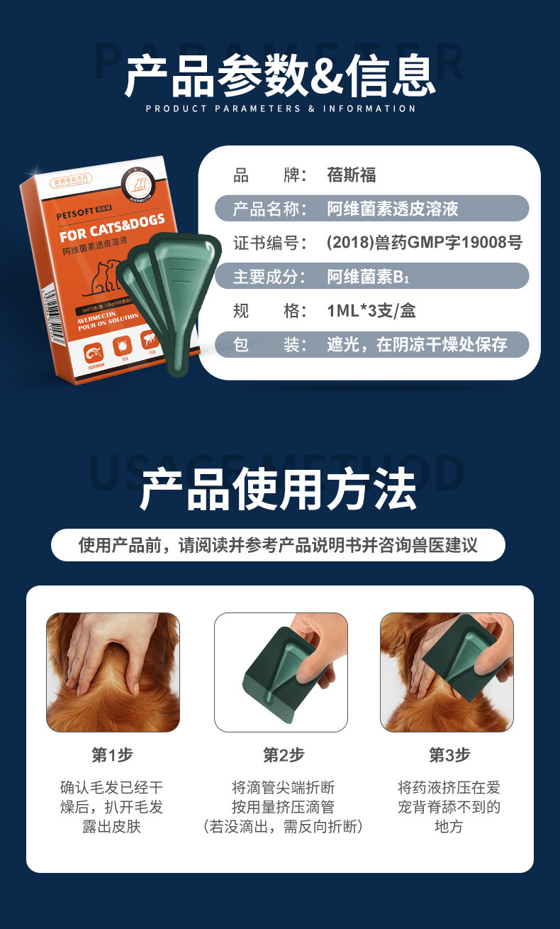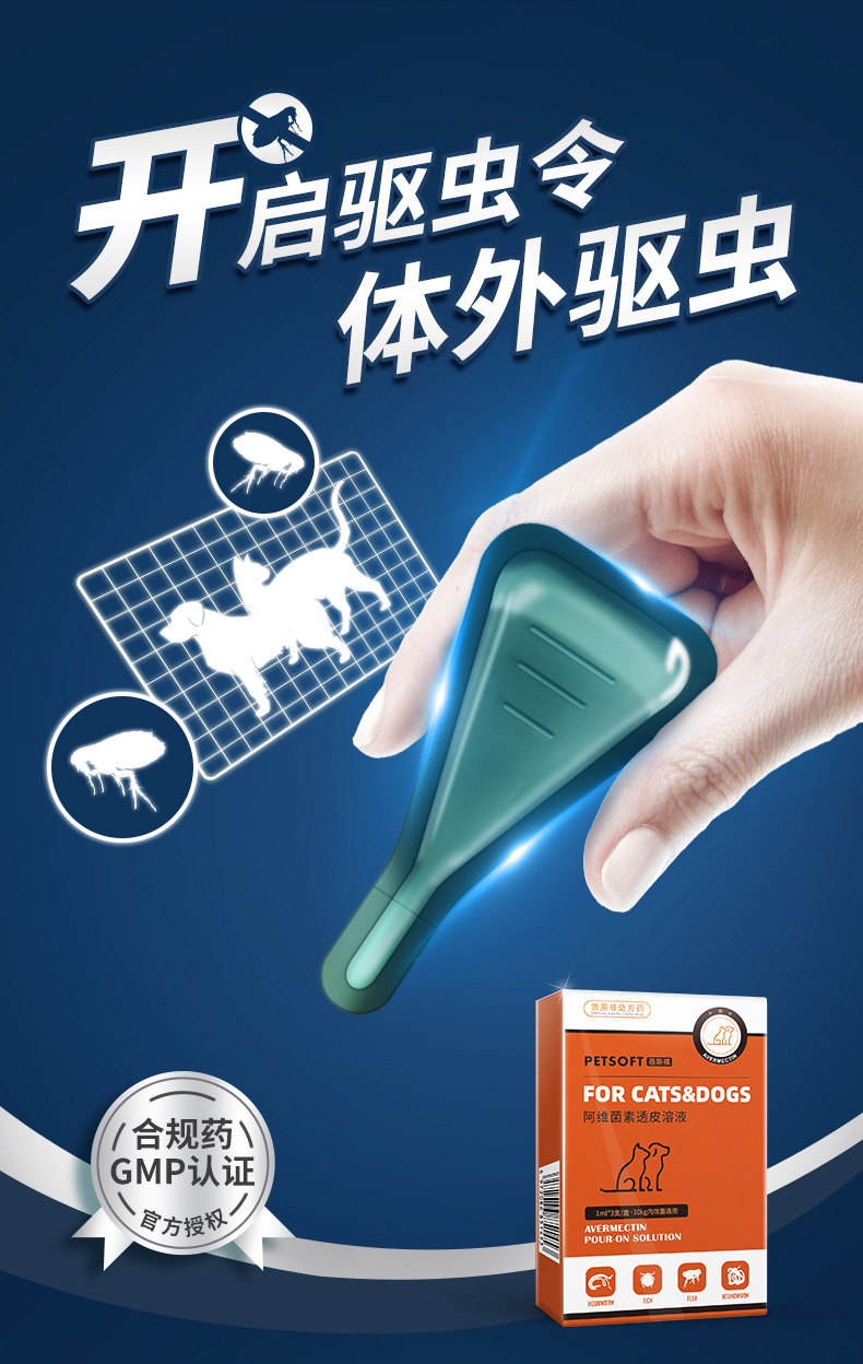 Антигельминтное средство для собак, внутреннее и наружное антигельминтное средство, капли с абамектином от блох и клещей для кошек
