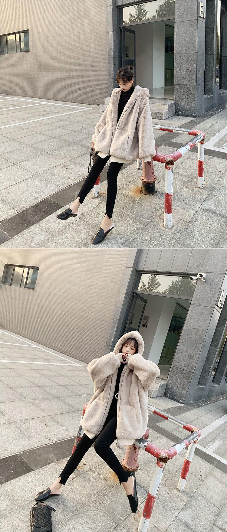 Свободное плюшевое пальто для женщин, искусственное меховое пальто, утолщенное, средней длины, с капюшоном, для осени и зимы