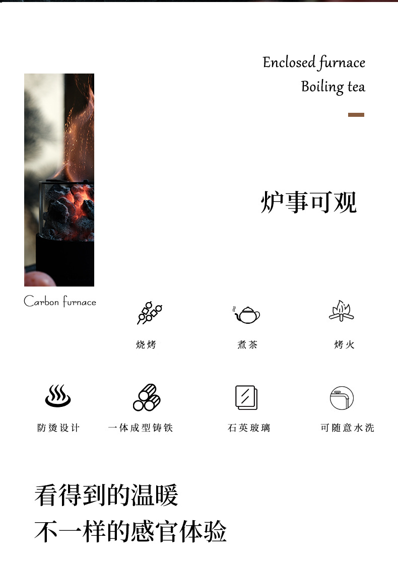 Печь для заваривания чая с закрытым огнем, стеклянная угольная печь