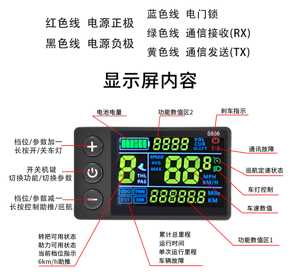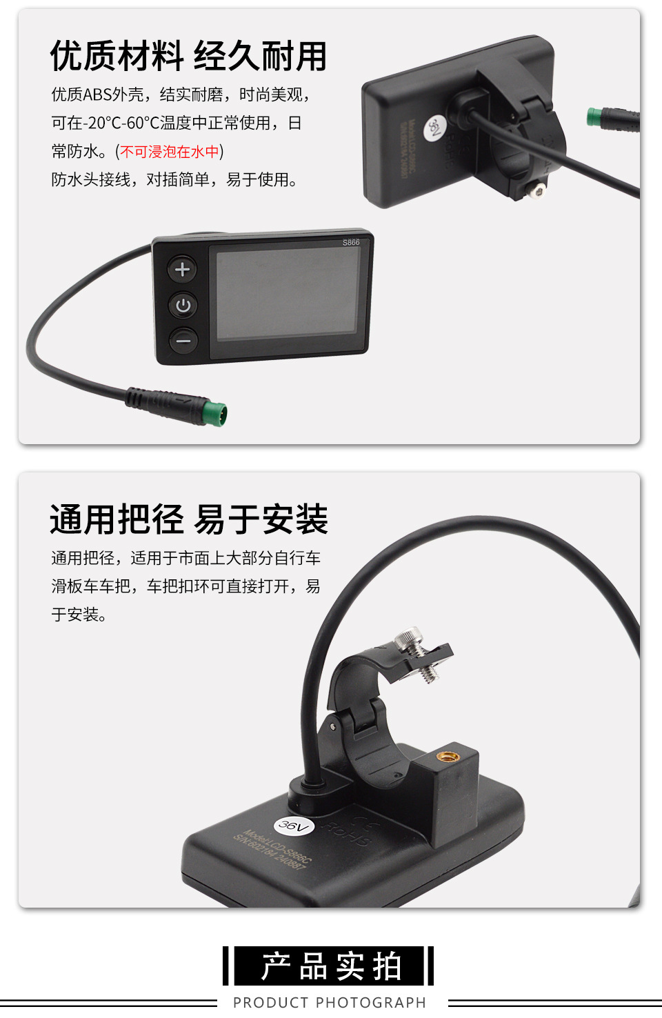 Цветной экран, электрический велосипед, водонепроницаемая голова с пятью проводами, инструмент управления скоростью, горный велосипед S866, умный LCD дисплей