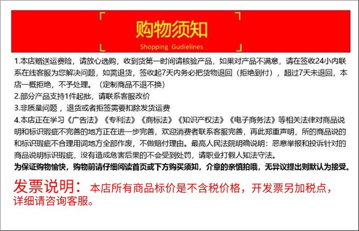 本店支持一件发货,下不了单可以联系客服!内蒙,青海,甘肃,宁夏,海南等地区需要加运费。标题为引流优化,仅供参考。价格为不含税价,开票先咨询客服。