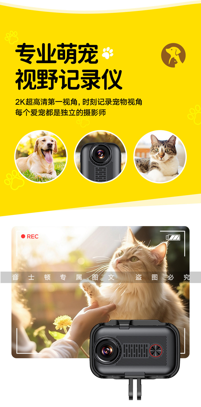 Влог-камера для записи с перспективы питомца, для кошек и собак, с движением, для крепления на груди