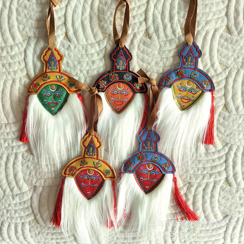 Вышитая маска, этнические ремесла, украшения для мебели, двухсторонняя маска из кожи Сычуани